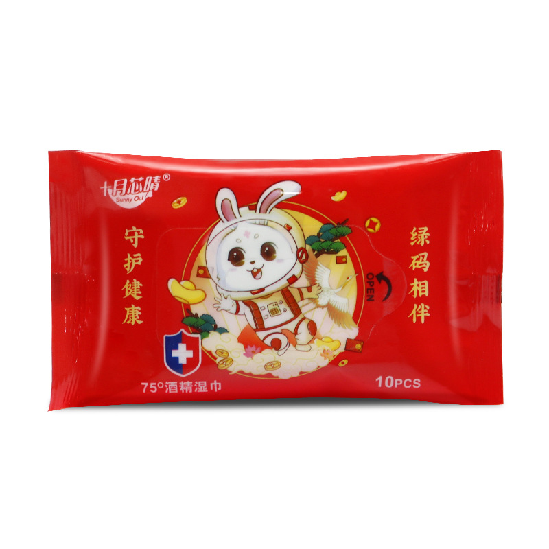 消毒湿巾大量批发支持定制10片装杀菌清洁免洗湿纸巾 75%酒精湿巾
