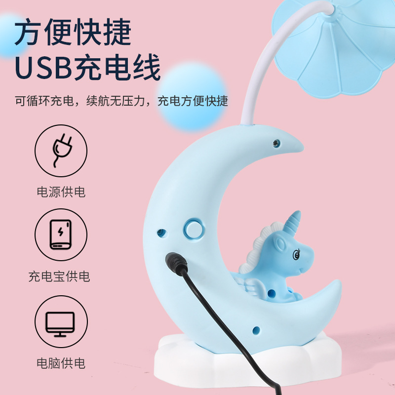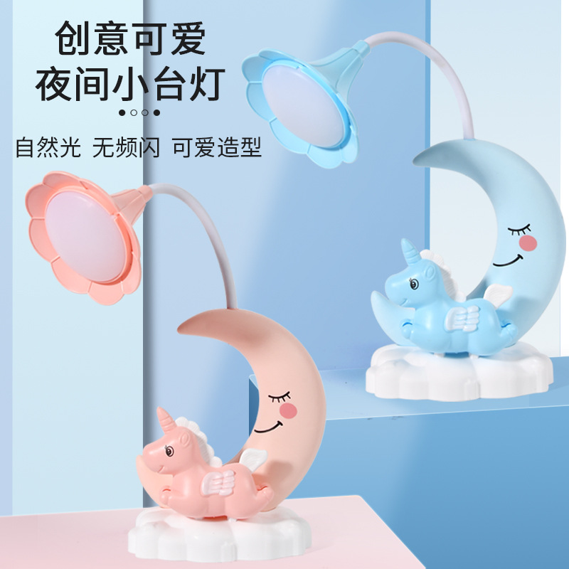 新品卡通月亮独角兽USB充电小夜灯 卡通台式宿舍学生台灯