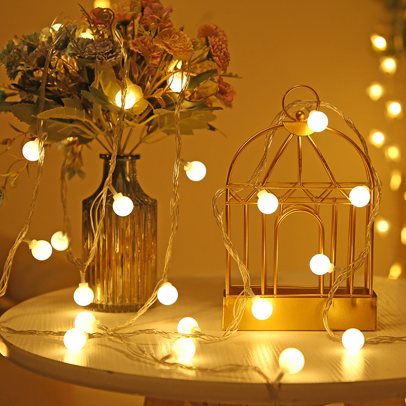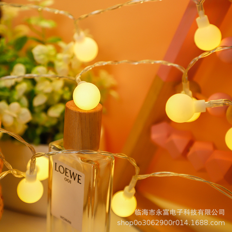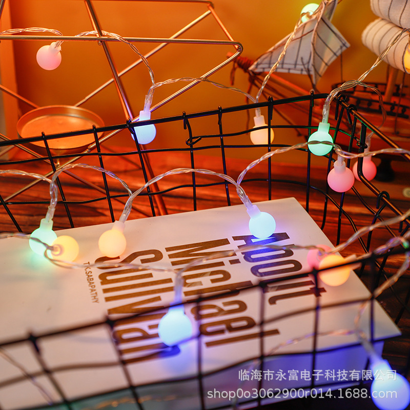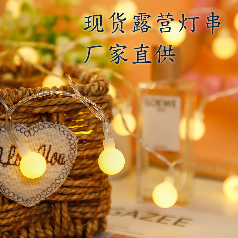 led露营灯串 电池盒磨砂圆球串灯批发圣诞节日布置天幕氛围彩灯