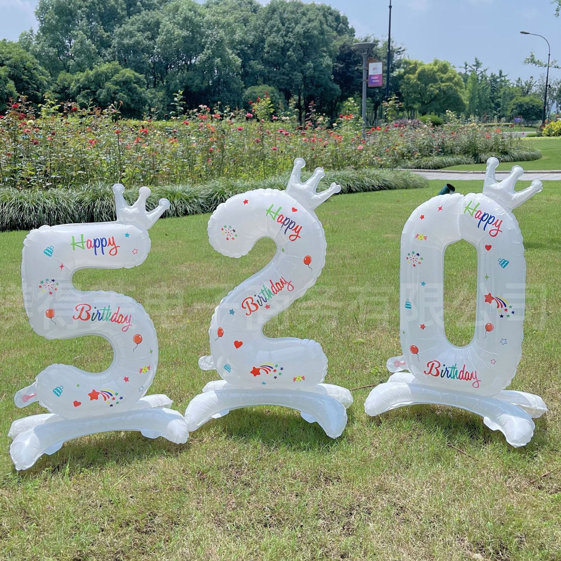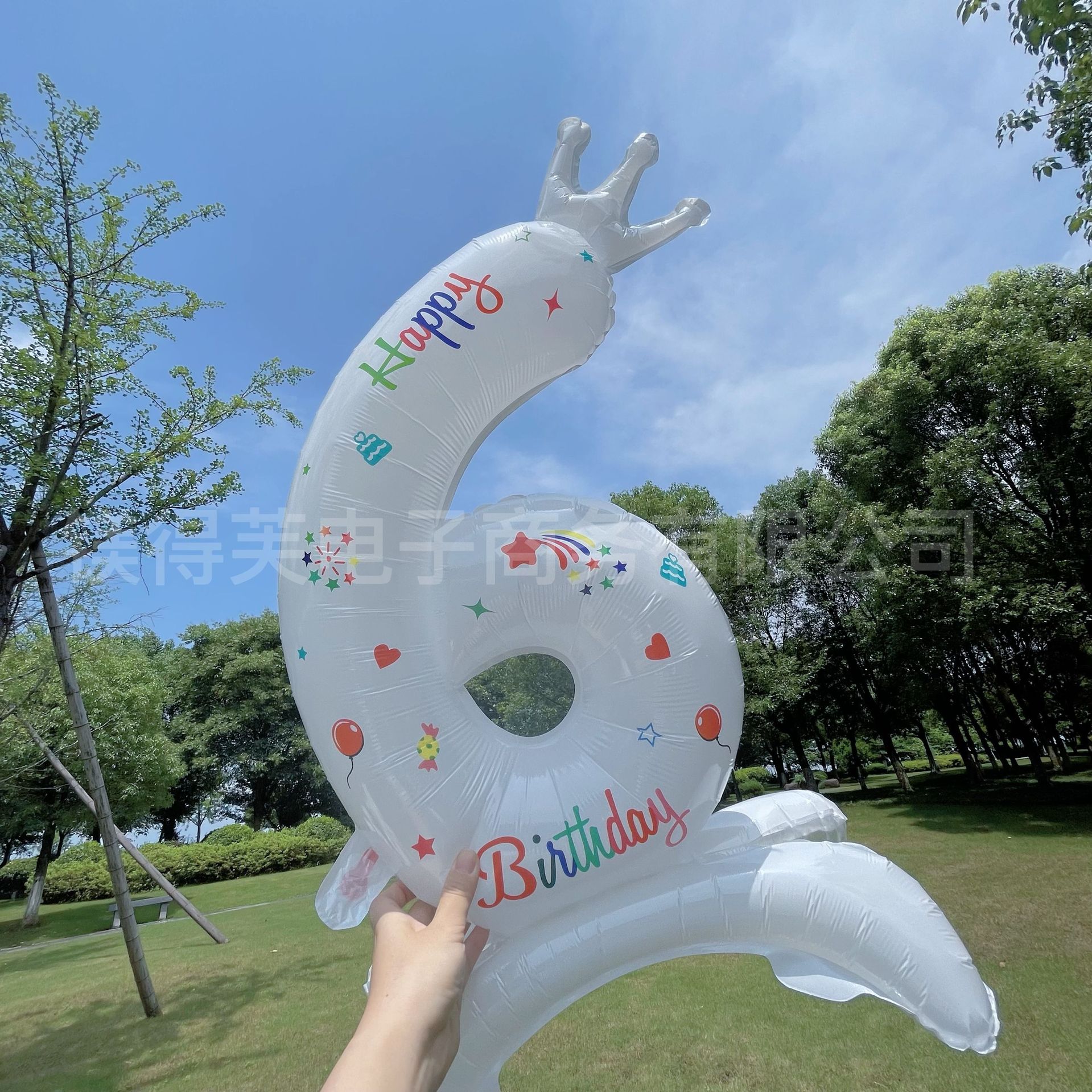 32寸站立白色皇冠数字气球ins风小清新铝膜气球 儿童生日派对装饰