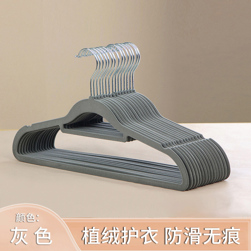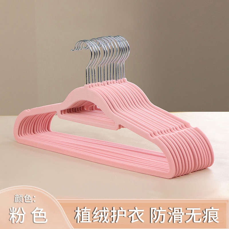 厂家直供塑料无痕防滑植绒衣架家用收纳整理师衣撑衣服挂衣架批发
