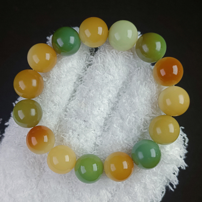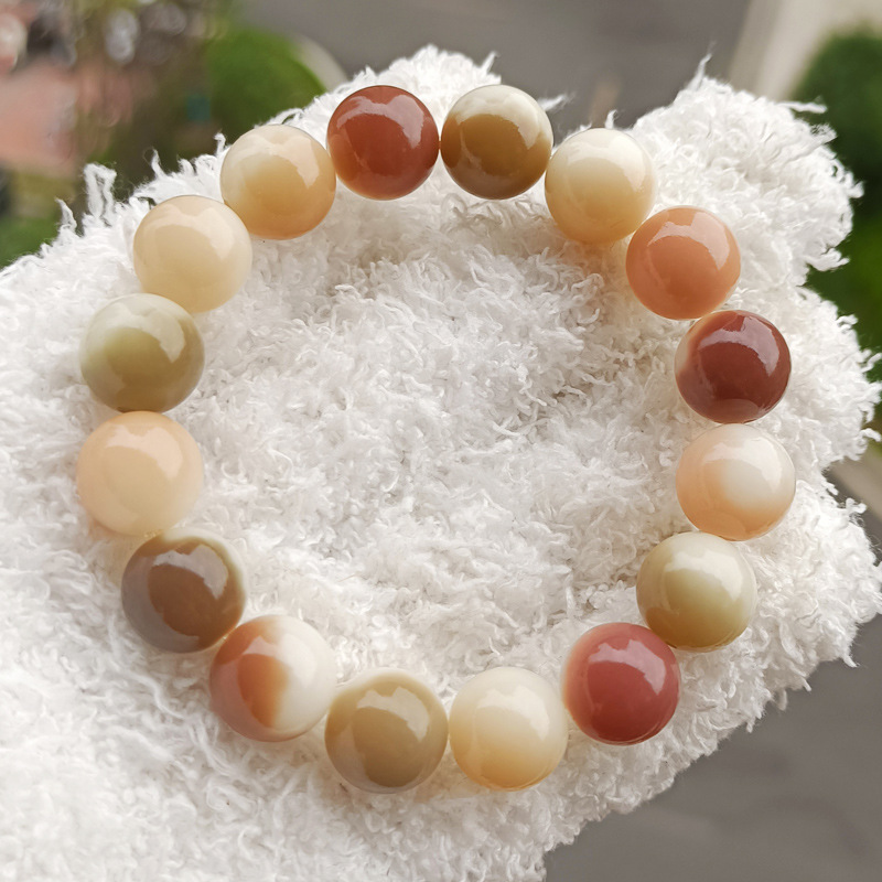 天然飘花白玉菩提根手串绕指柔多宝色山水料圆珠文玩佛珠手链批发
