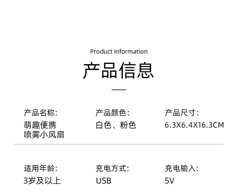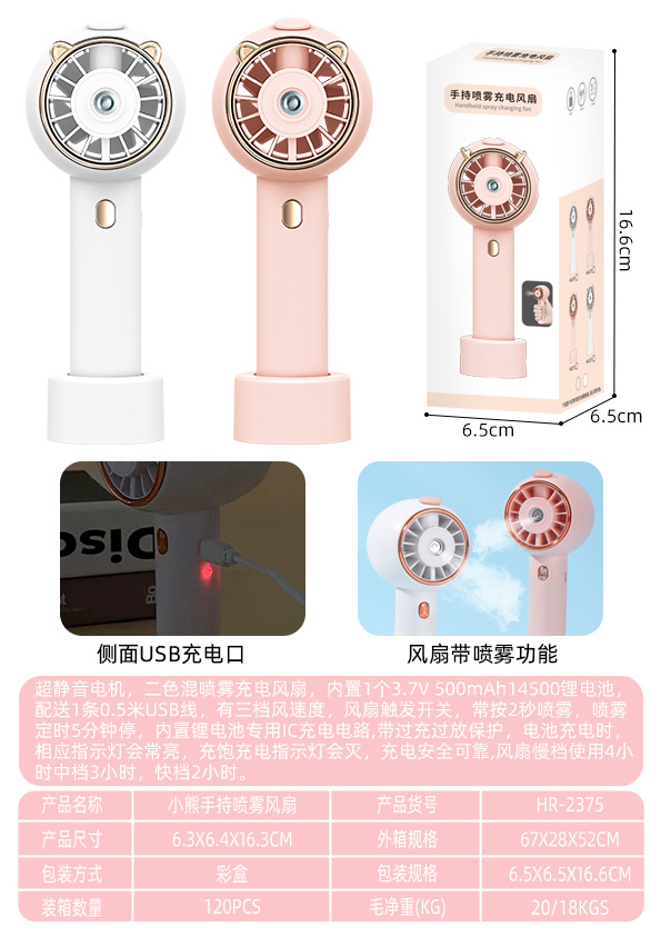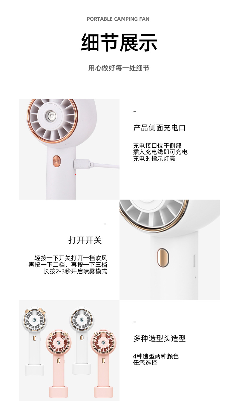 涡轮喷雾风扇 USB充电萌宠卡通学生户外便携式手持补水喷雾风扇