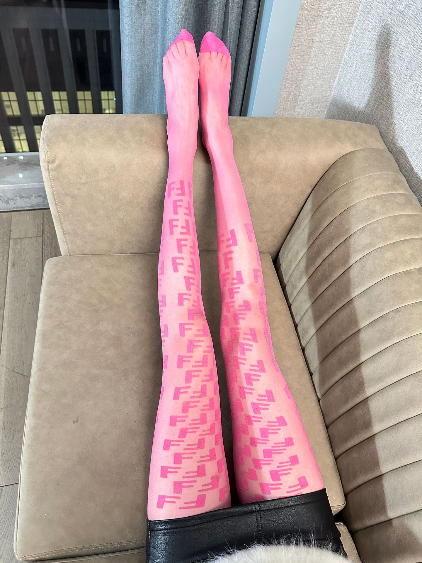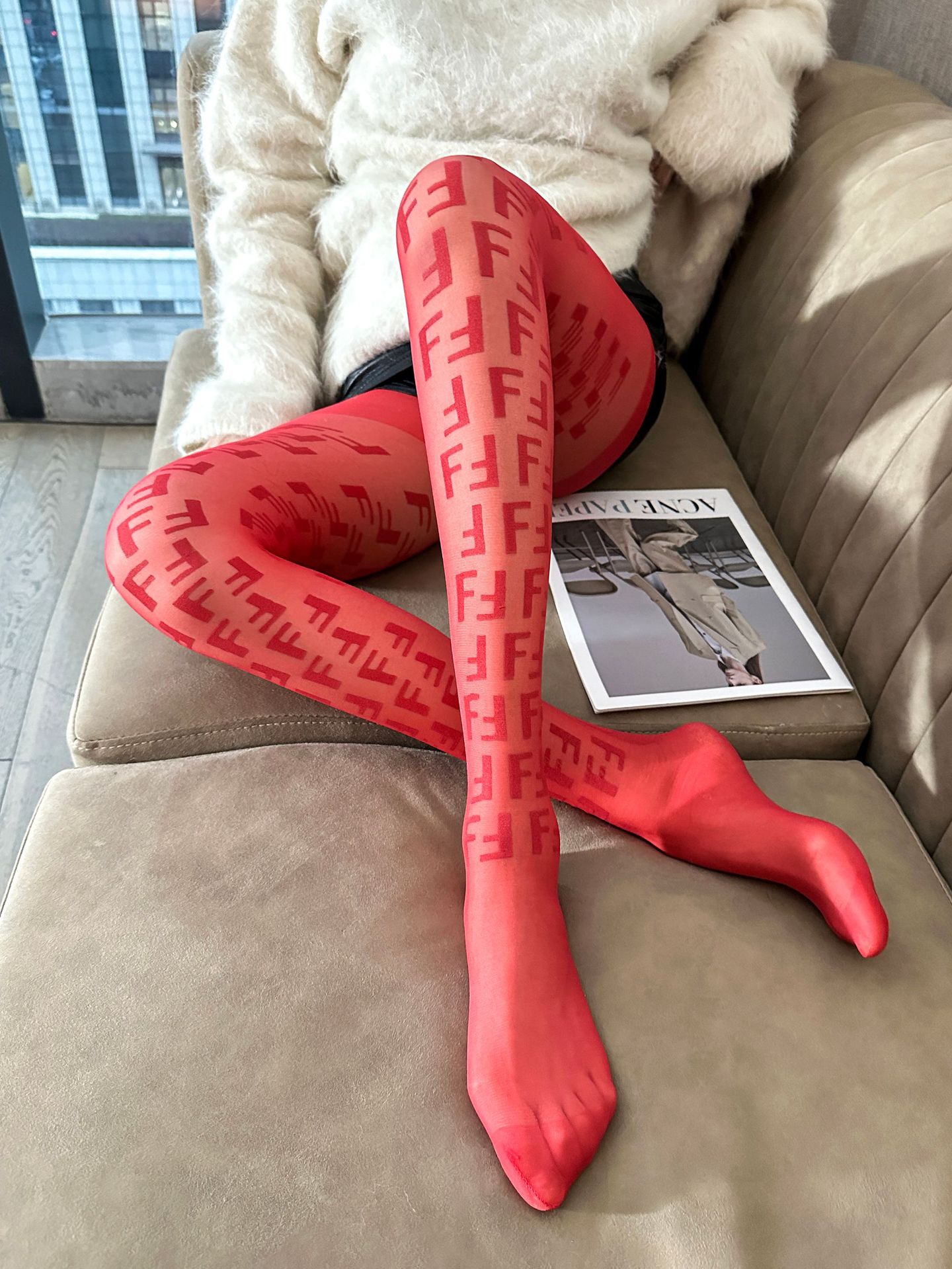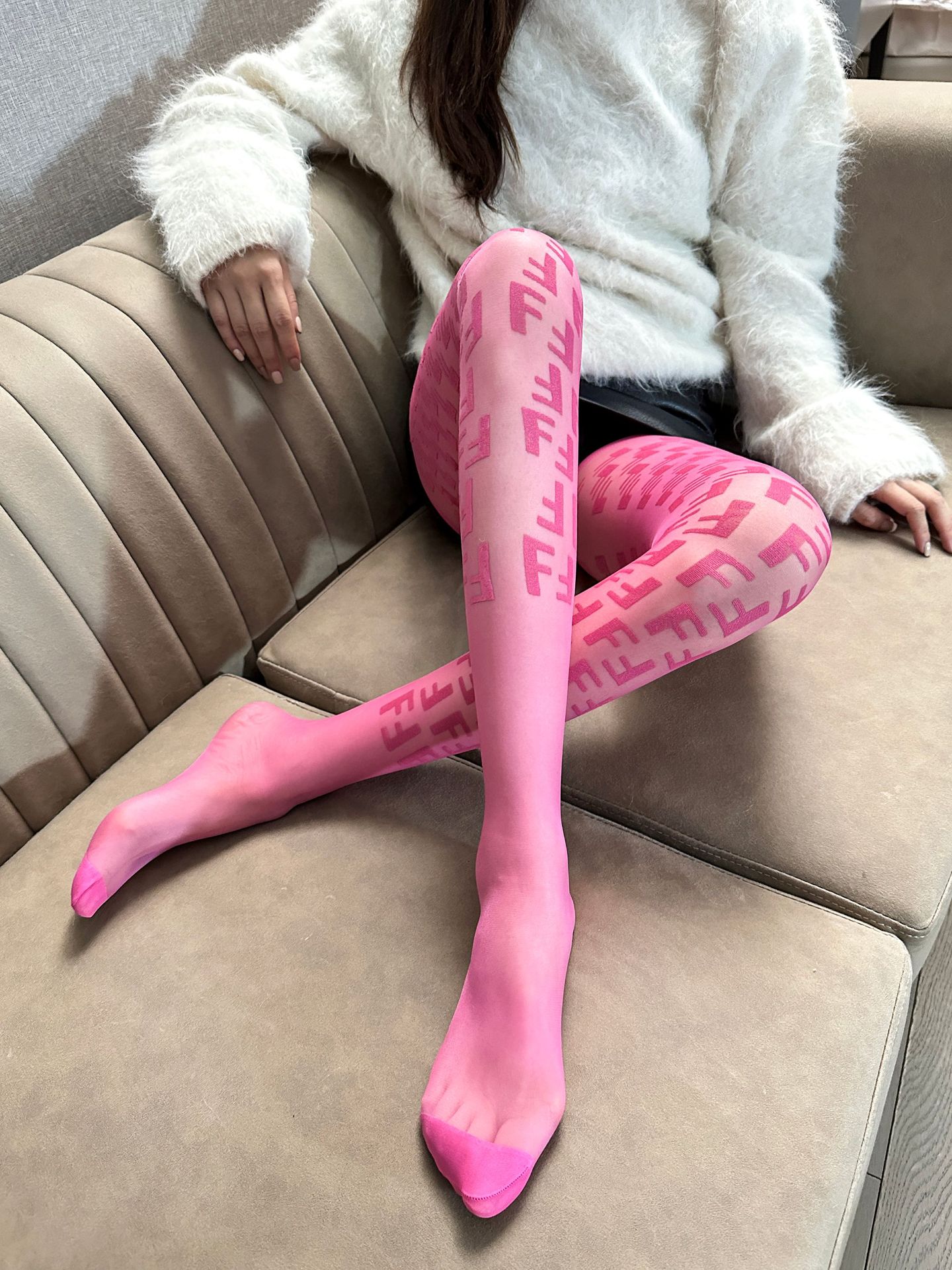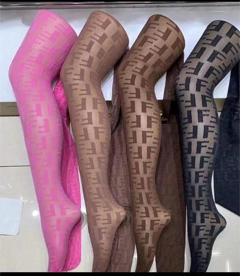 欧美FF包芯丝字母连裤袜大牌印花丝袜跨境专供彩色性感袜打底袜