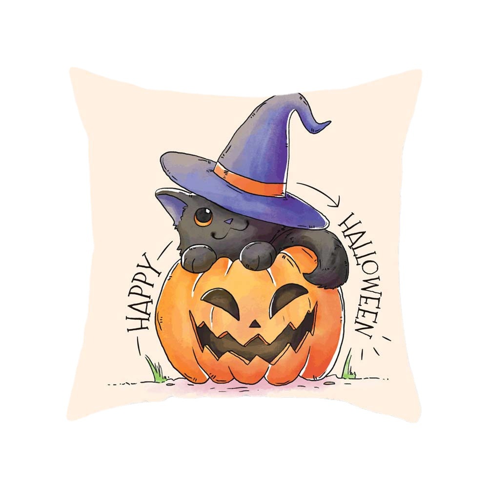 跨境万圣节短毛绒抱枕套节庆酒吧南瓜手绘水彩装饰靠枕靠垫抱枕套