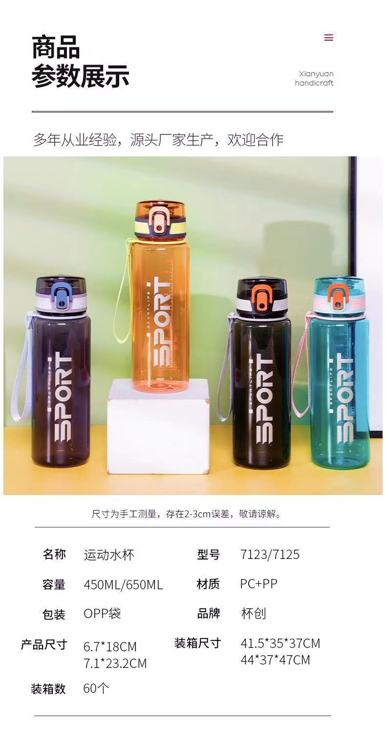 杯创新款直饮水杯便携男女学生简约刻度杯健身运动杯子防摔太空杯