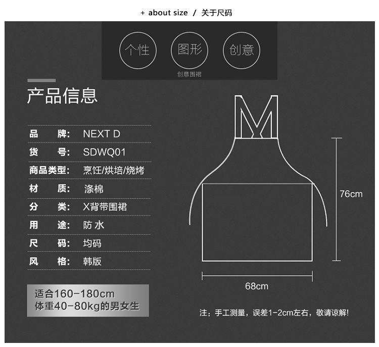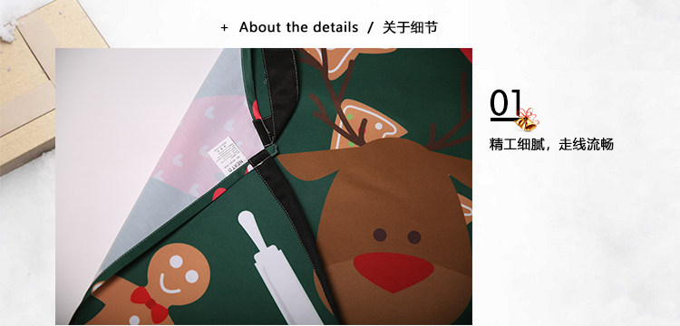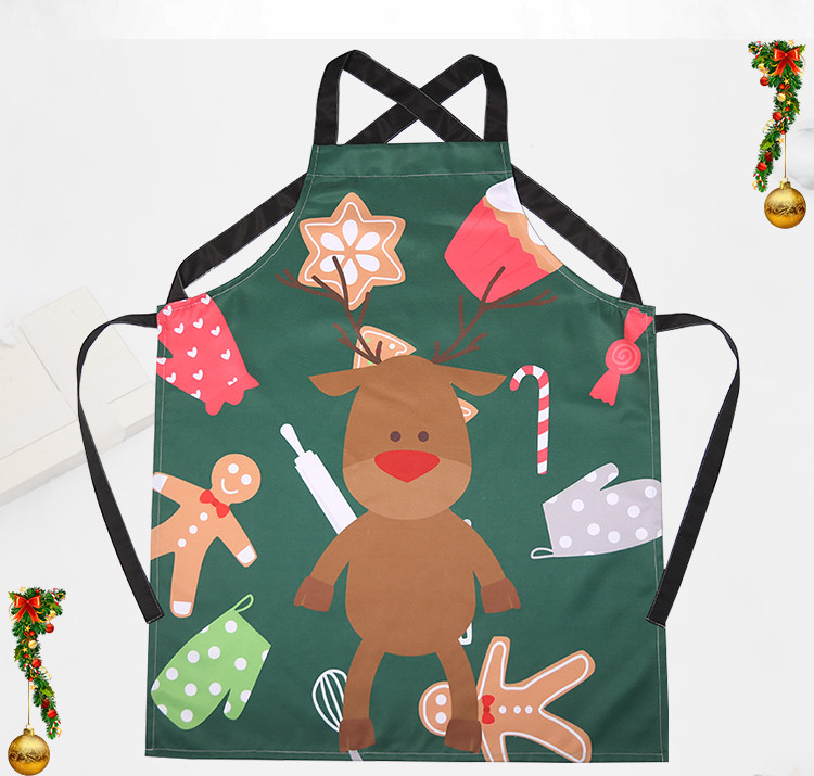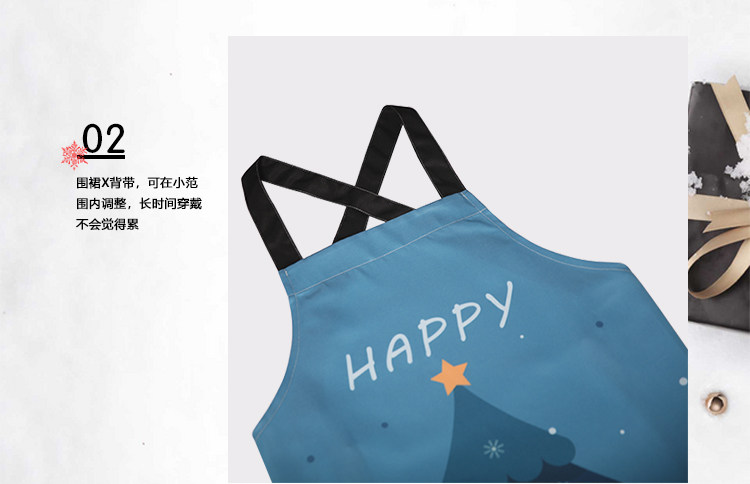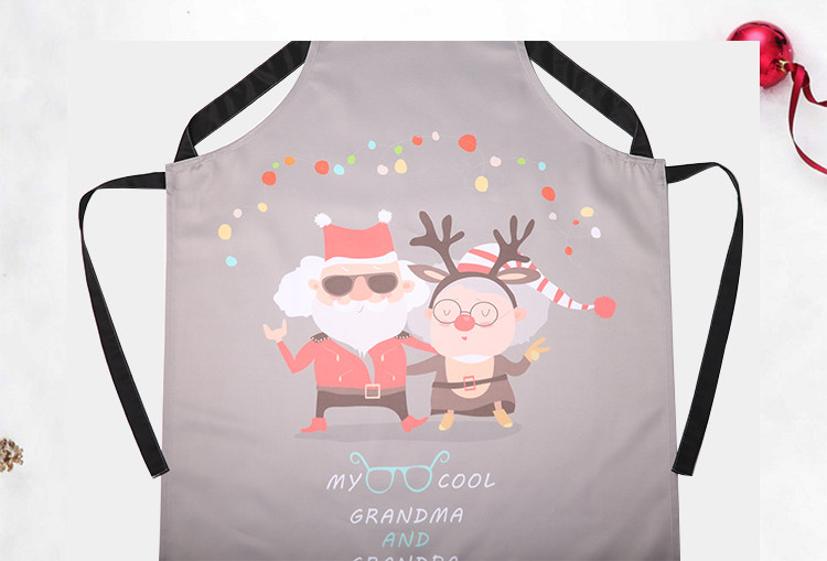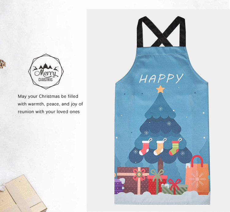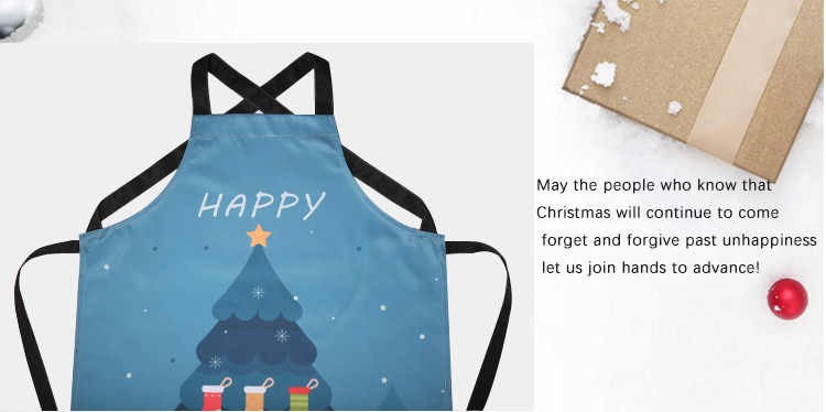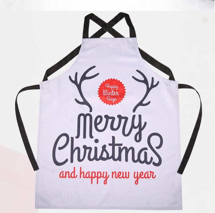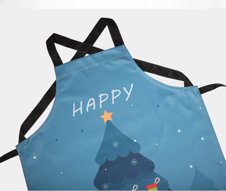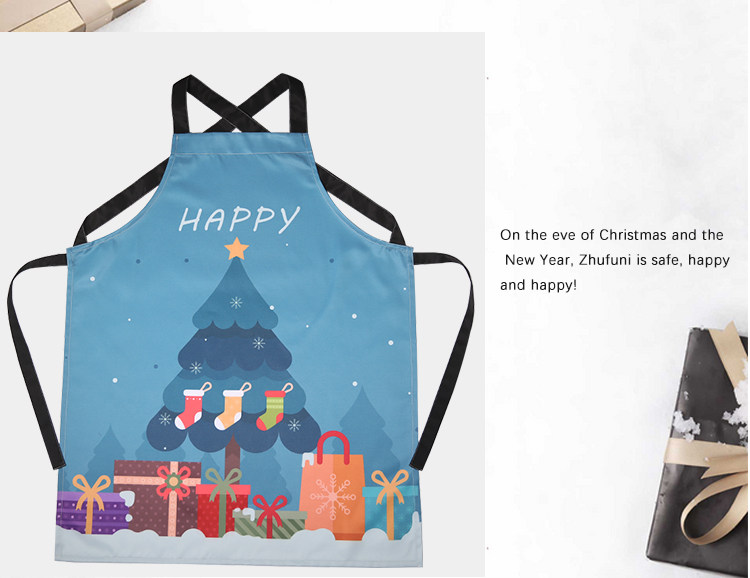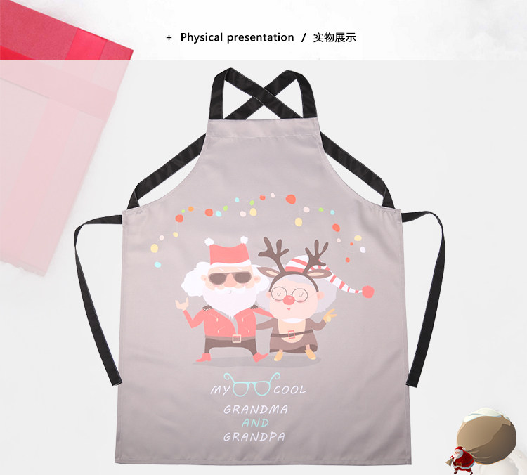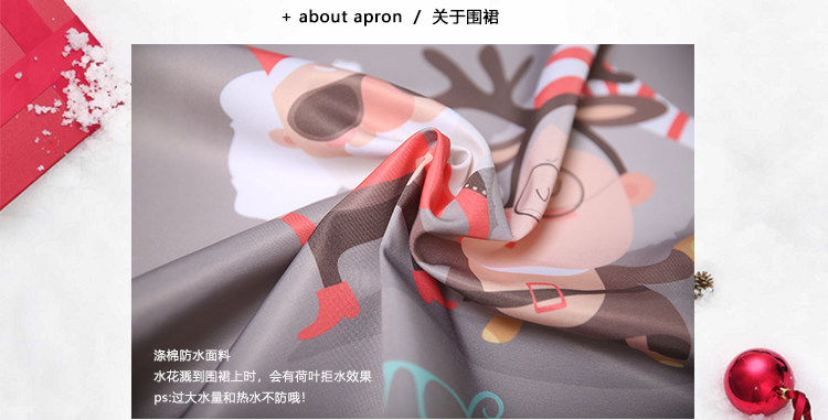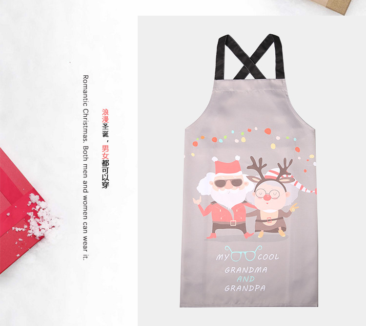 圣诞新年礼物烘焙涤棉防水围裙图案印花韩版厨房情侣男女定制LOGO