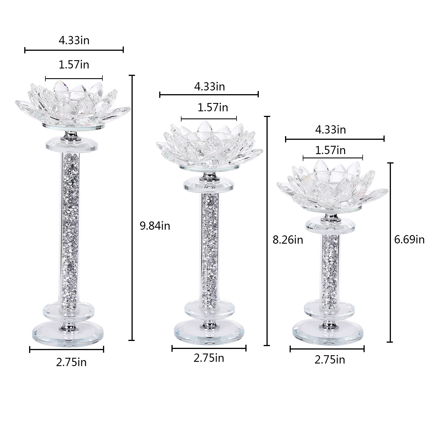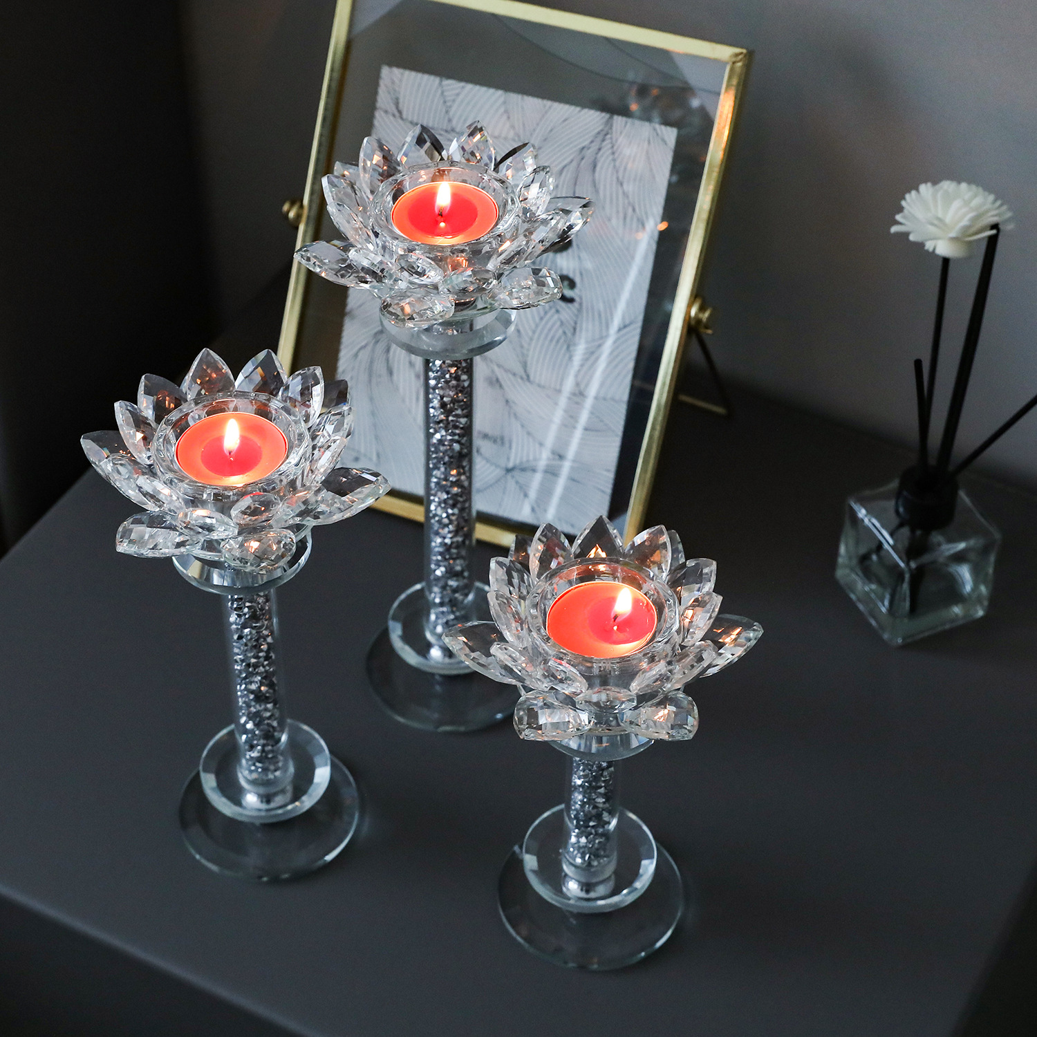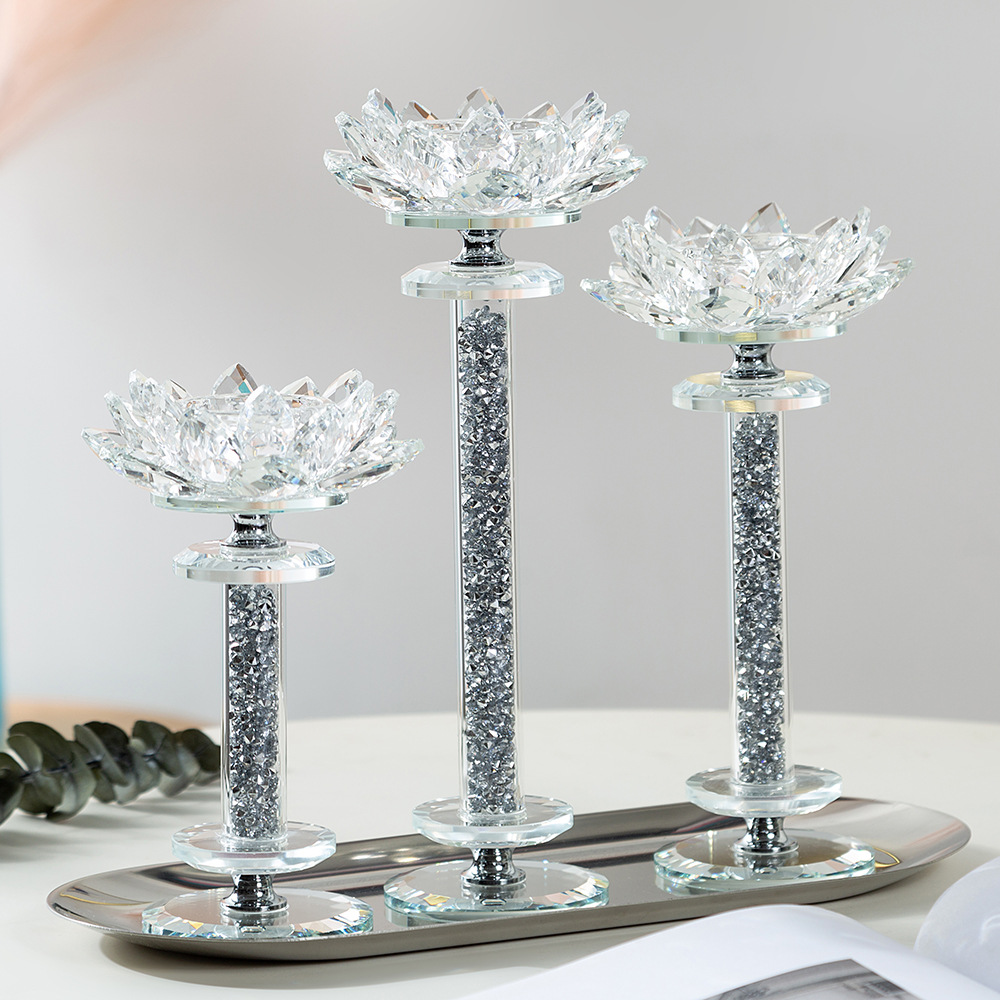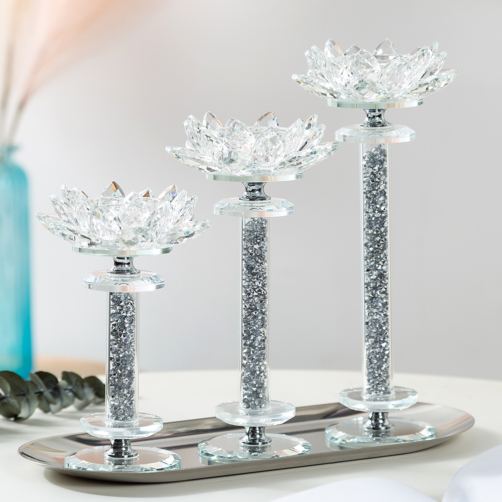 银色莲花烛台3件套水晶玻璃小蜡烛台 浪漫烛光晚餐道具西餐厅烛台
