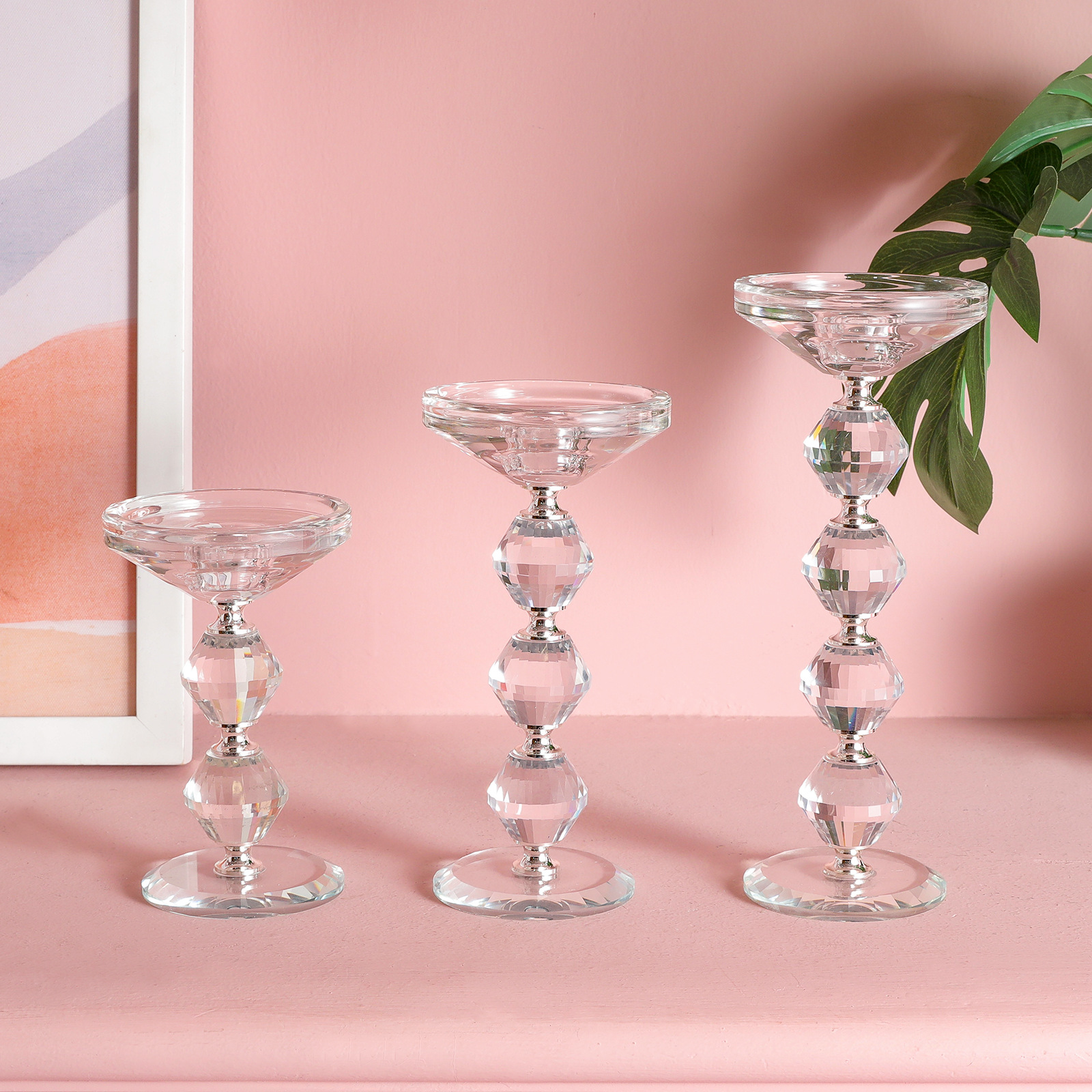 工厂直销水晶直面钻烛台家居装饰三件套