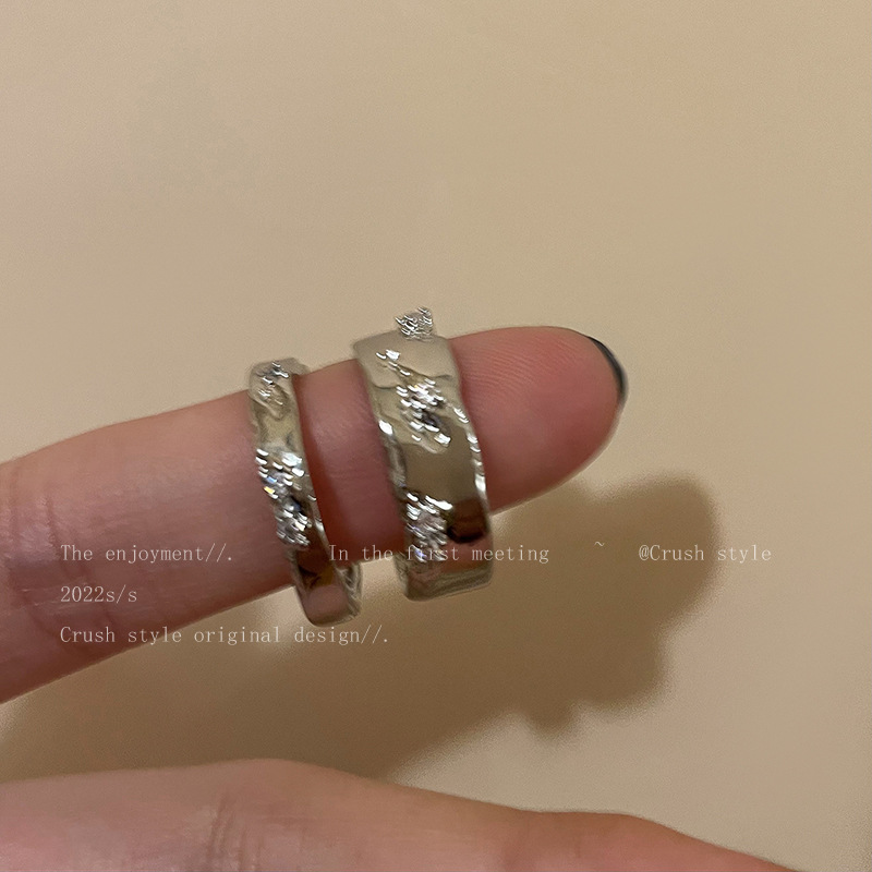银色素圈锆石开口戒指套装女冷淡风气质情侣指环时尚个性食指戒潮