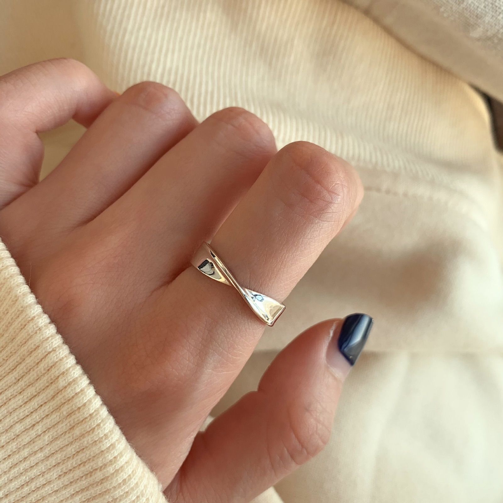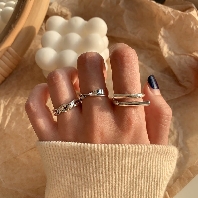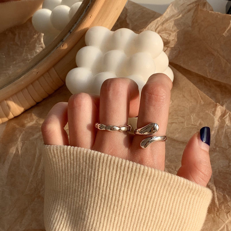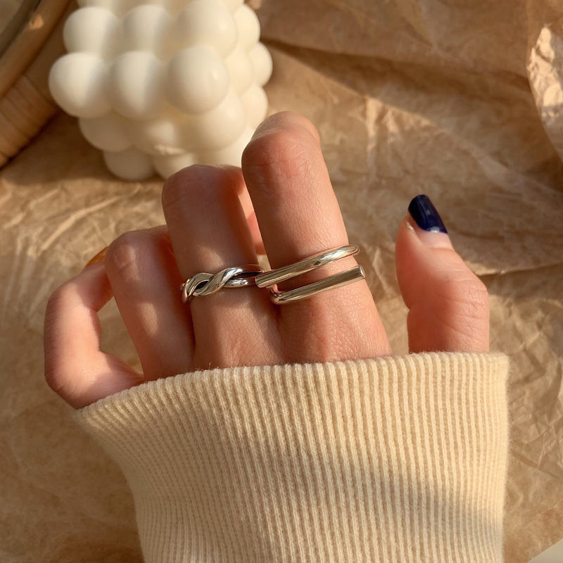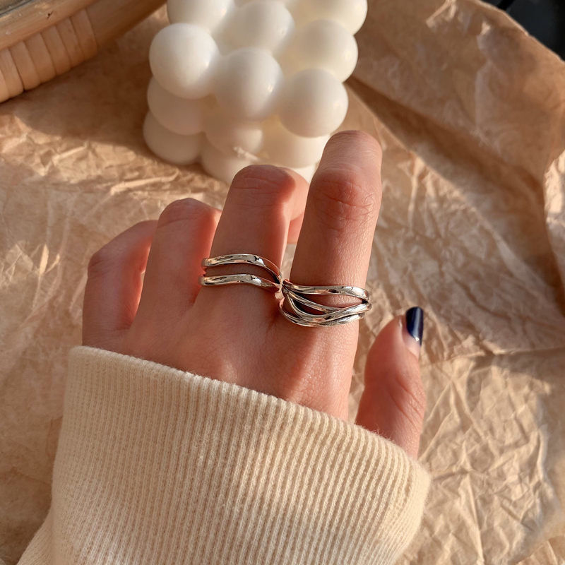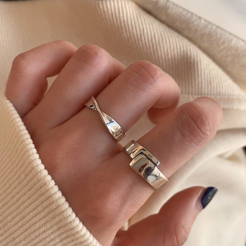 简约复古组合食指925纯银戒指女轻奢小众ins冷淡风个性蹦迪指环潮