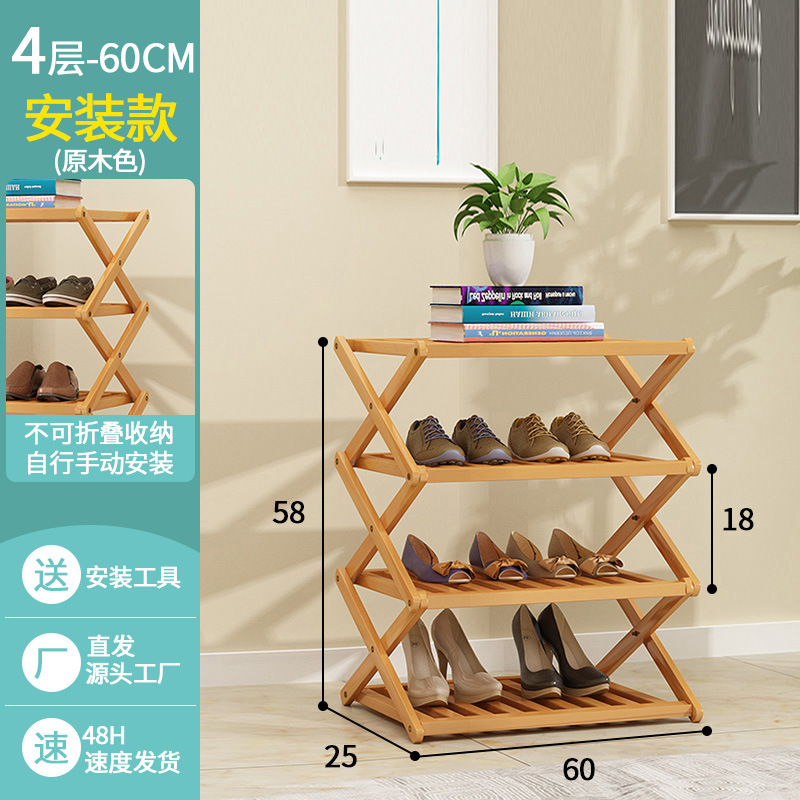 免安装鞋架多层简易鞋柜门口经济型楠竹木质折叠鞋架子多功能家用