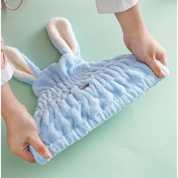 新款干发帽可爱卡通兔耳朵浴帽 速干吸水松紧珊瑚绒包头干批发