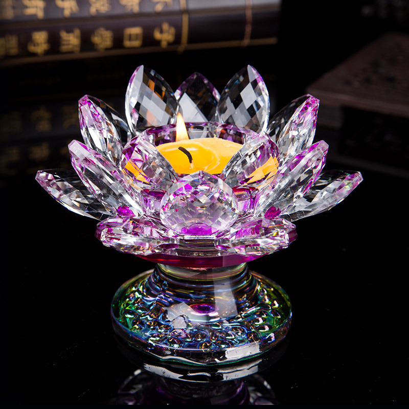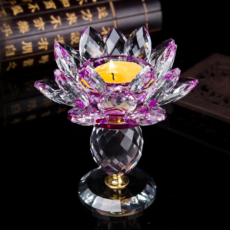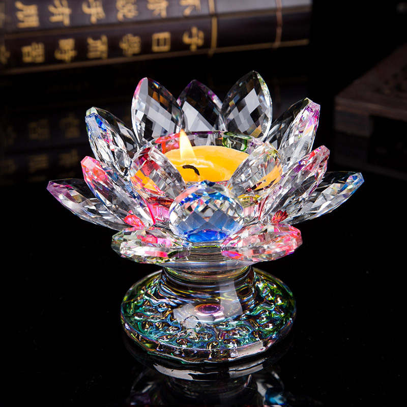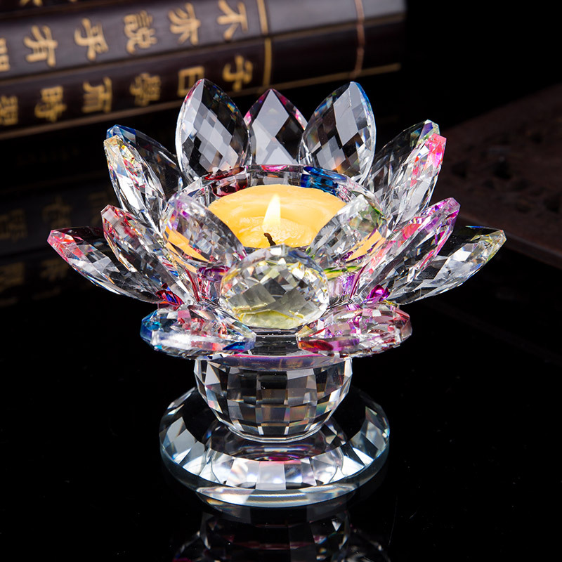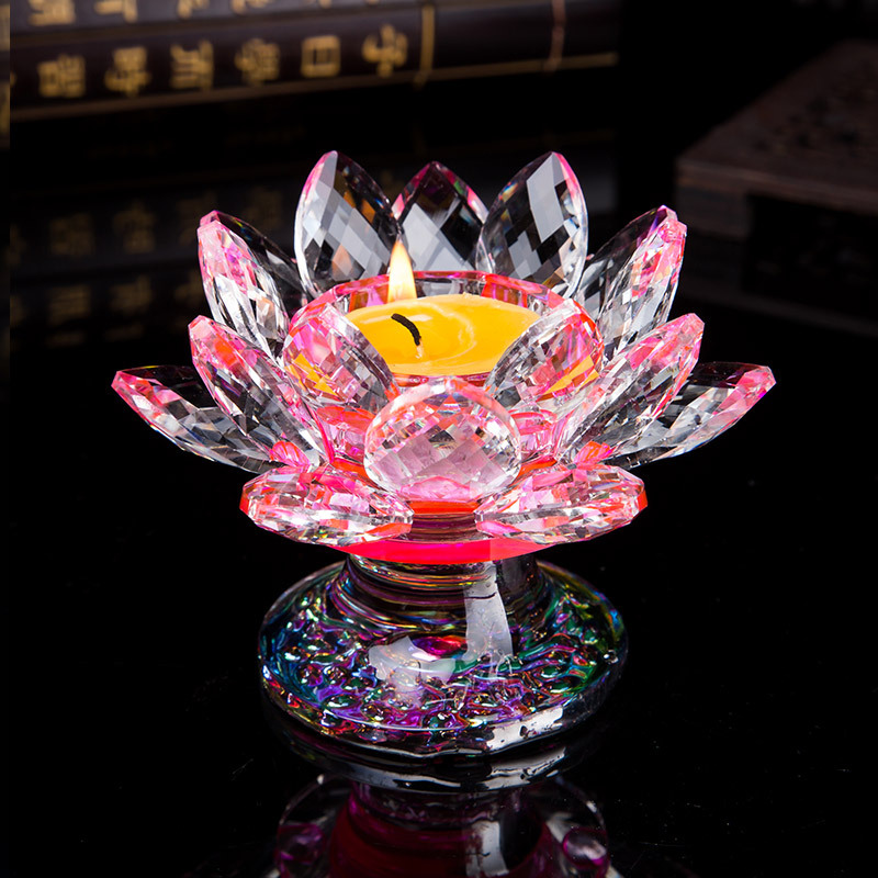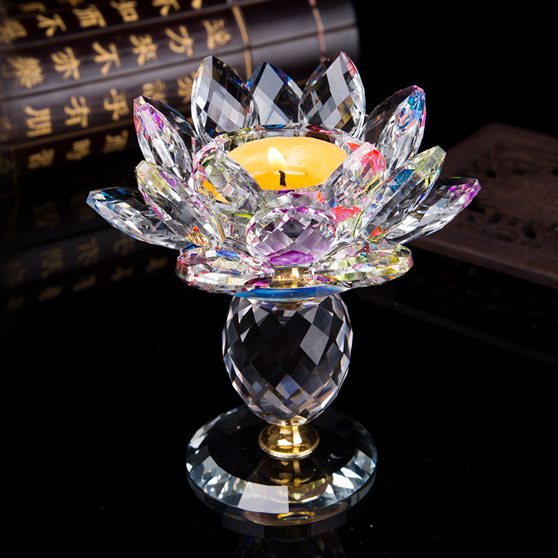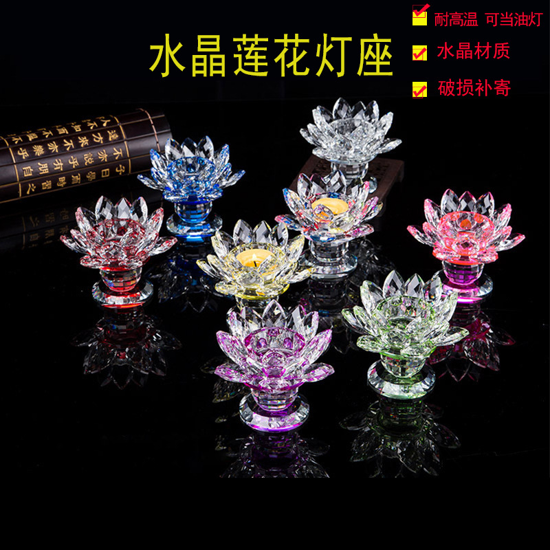 工厂直销七彩供灯水晶莲花烛家用供养水晶莲花烛台摆件