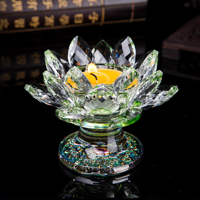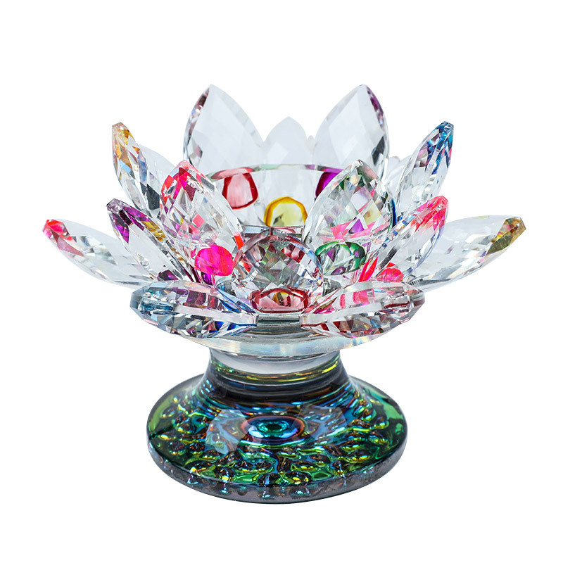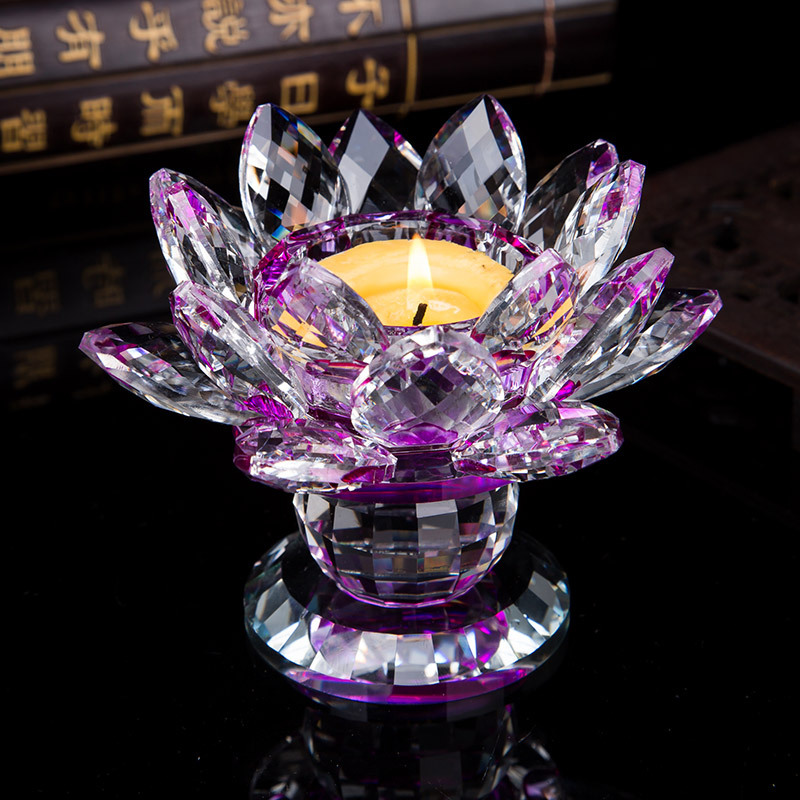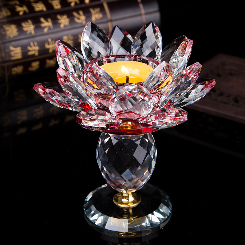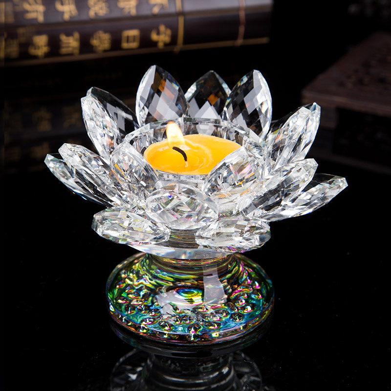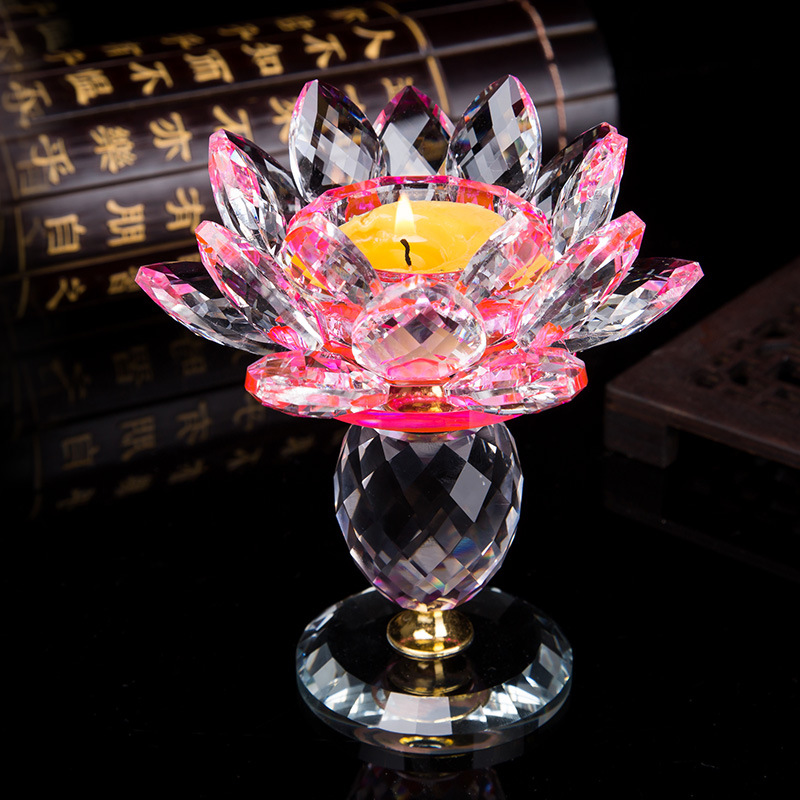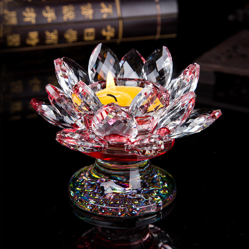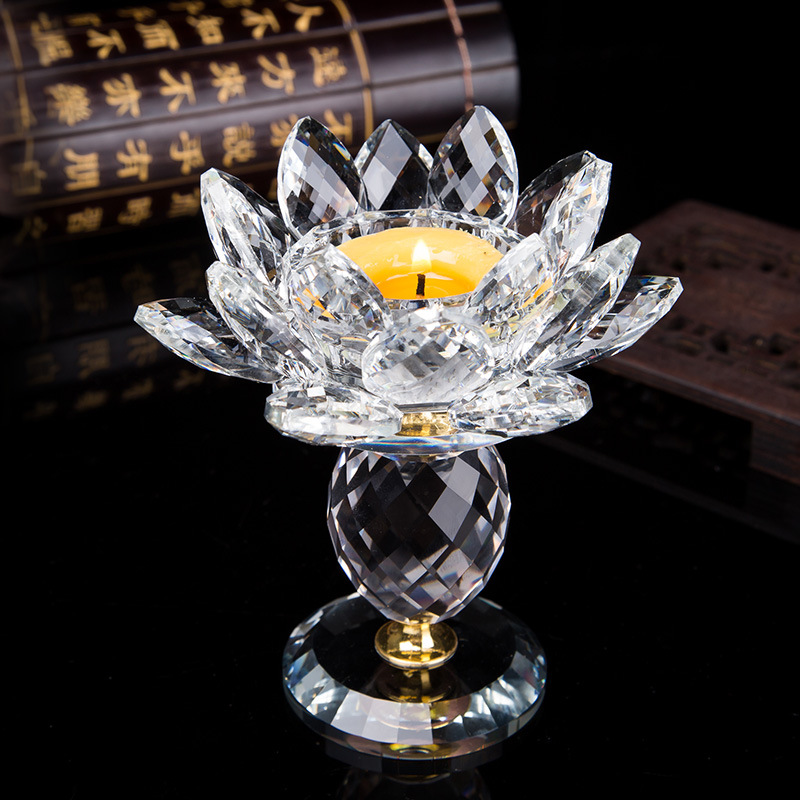 工厂直销七彩供灯水晶莲花烛家用供养水晶莲花烛台摆件
