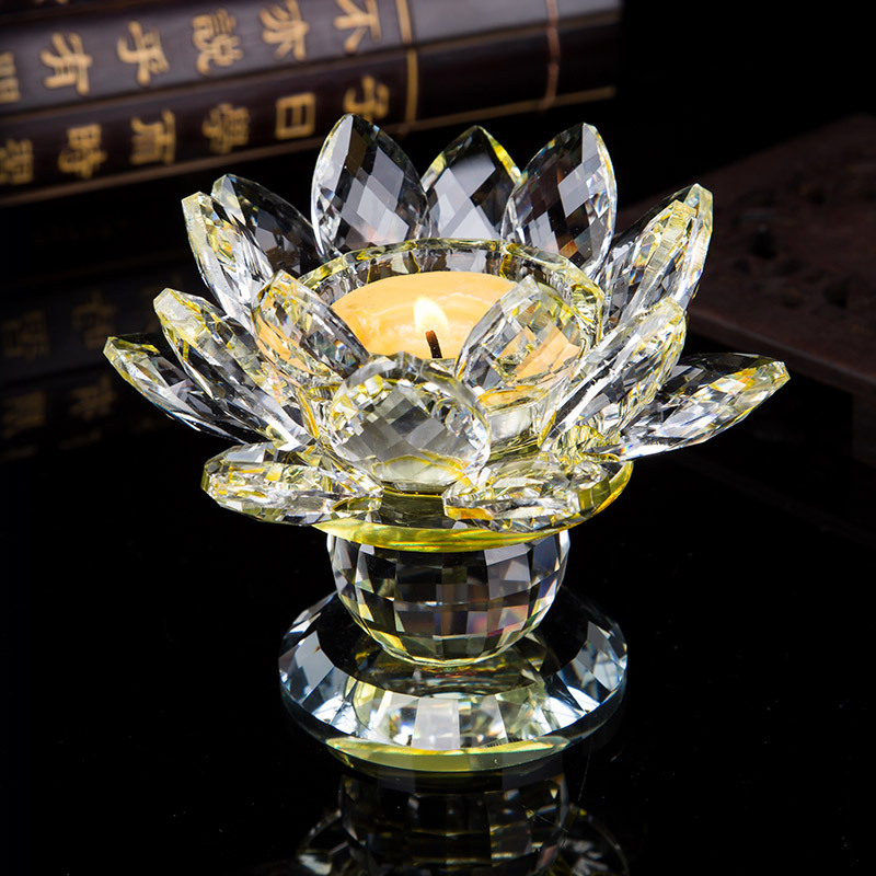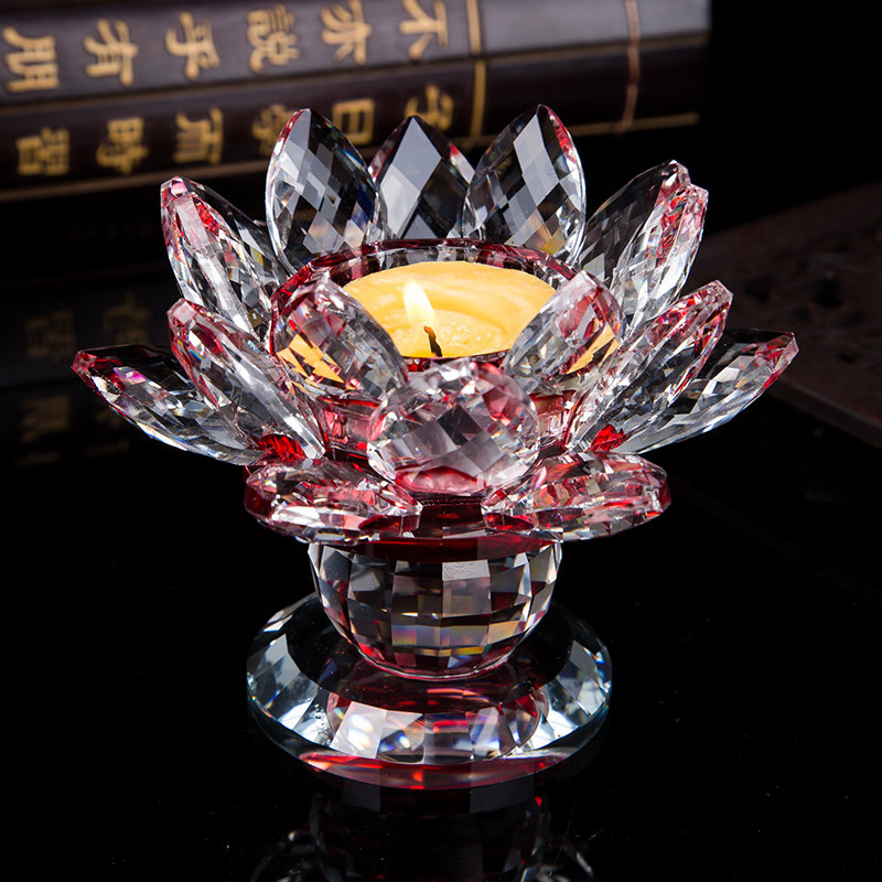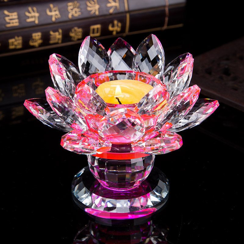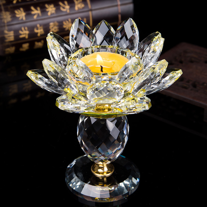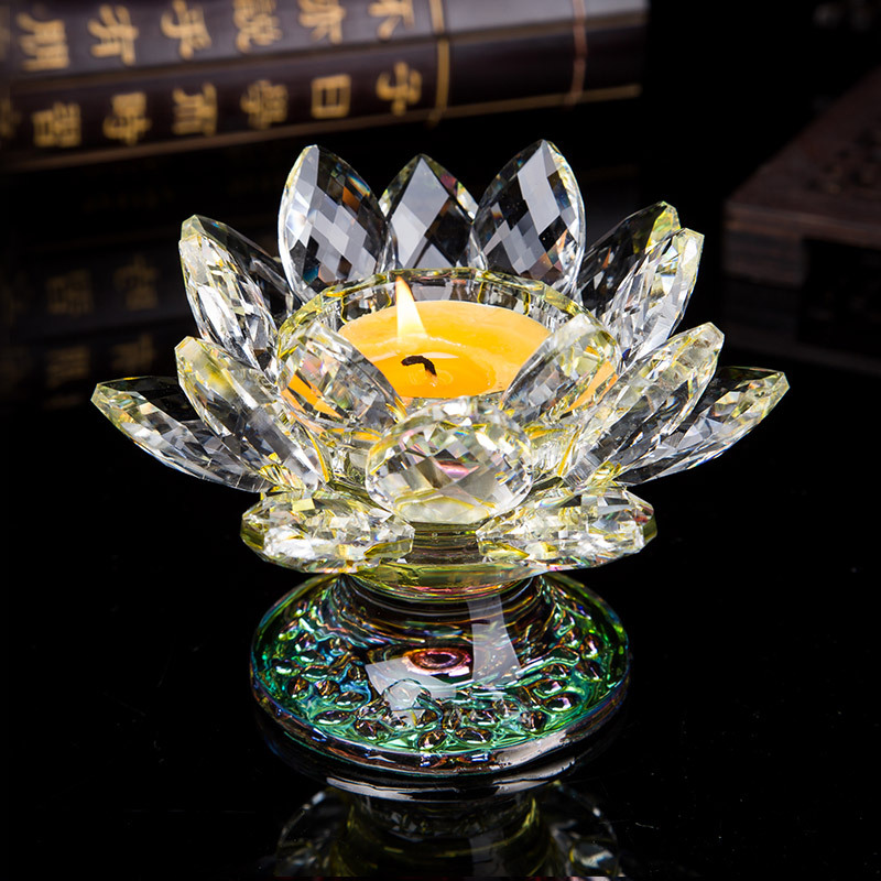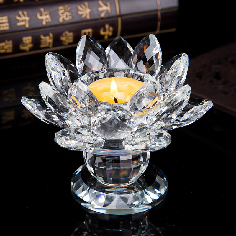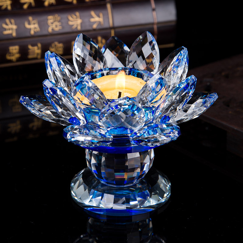 工厂直销七彩供灯水晶莲花烛家用供养水晶莲花烛台摆件
