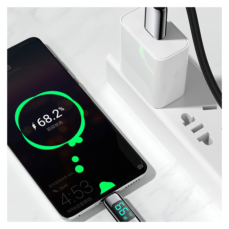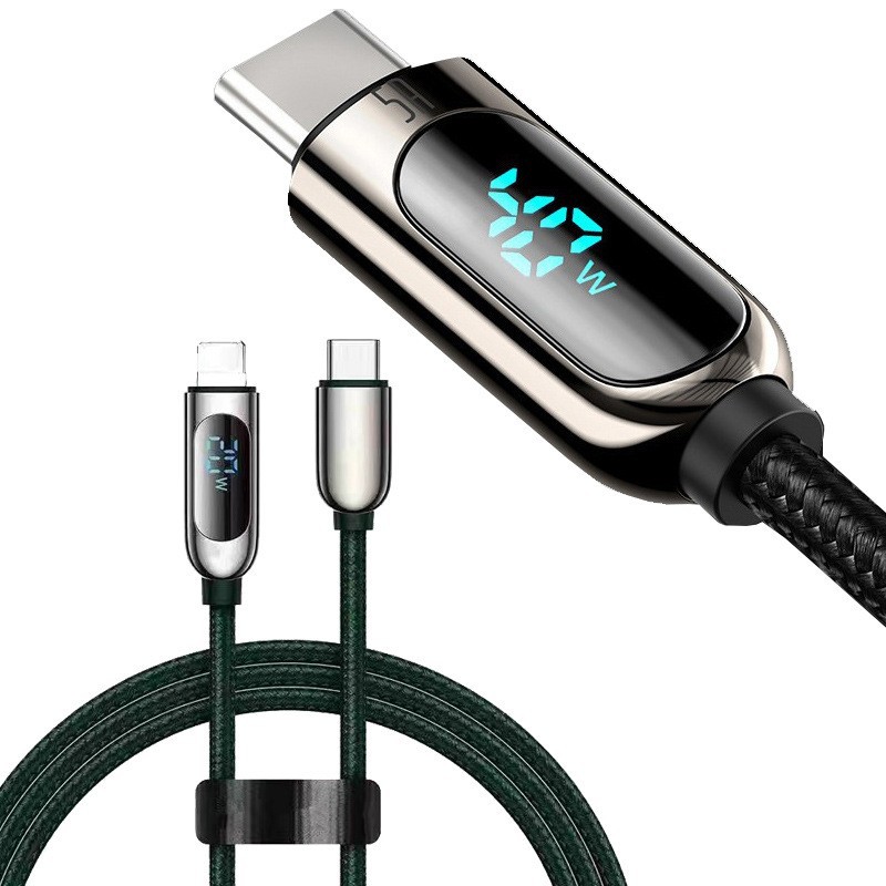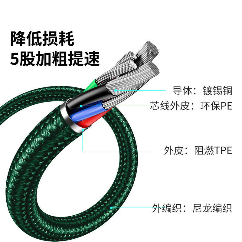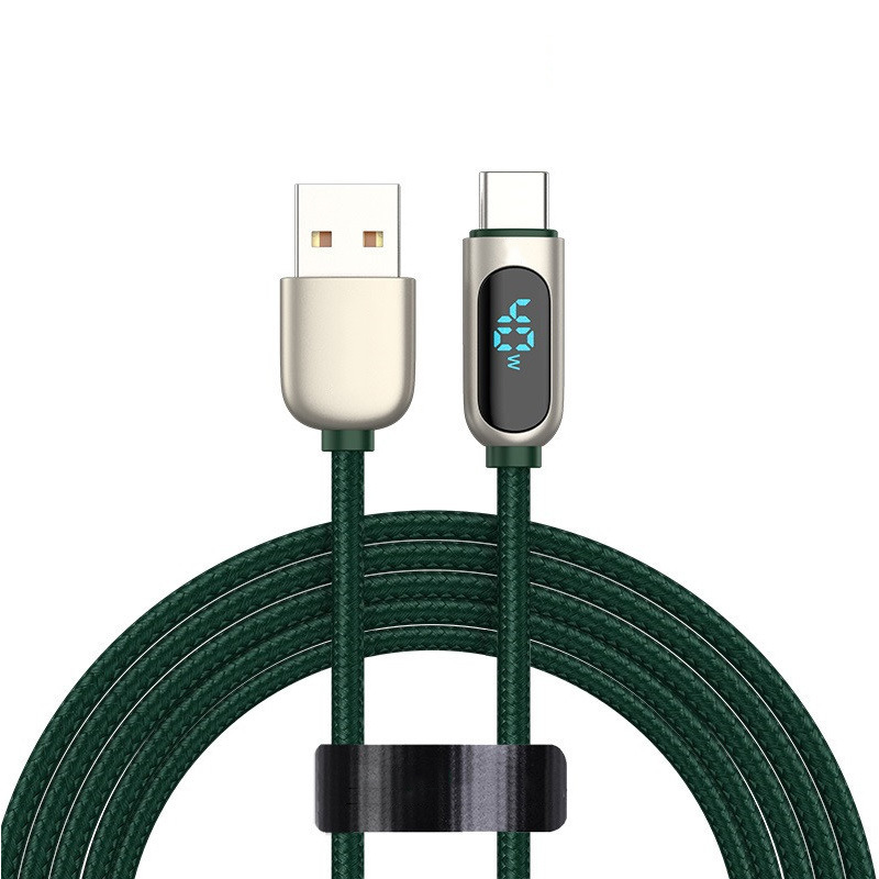 有线耳机 工厂批发 多功能数据线 墨绿色 数显数据线 66W超级快充 100W