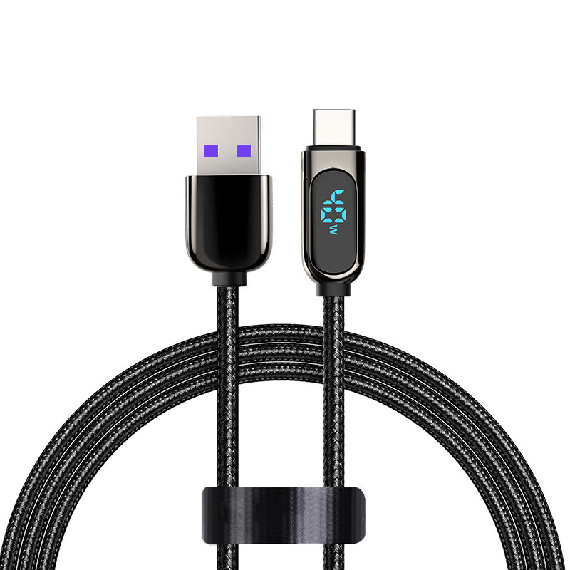 闪充数显数据线100W快充type-c充电线尼龙编织适用PD苹果华为手机