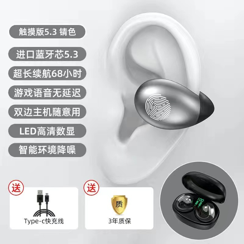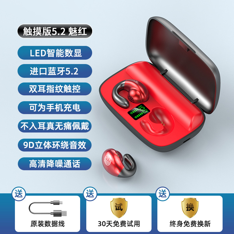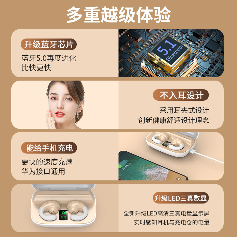 跨境爆款TWS私模S19骨传导耳夹式数显触控蓝牙耳机一件代发