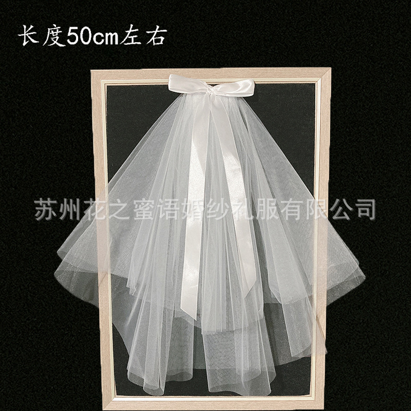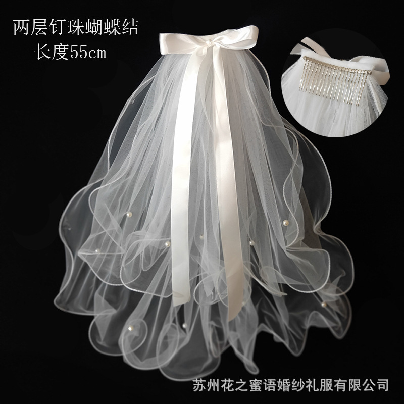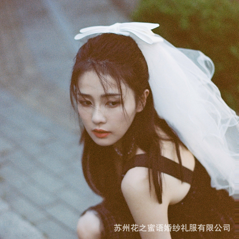 新娘法式小头纱白鹿同款超仙短款结婚拍照领证登记蝴蝶结蓬蓬头饰