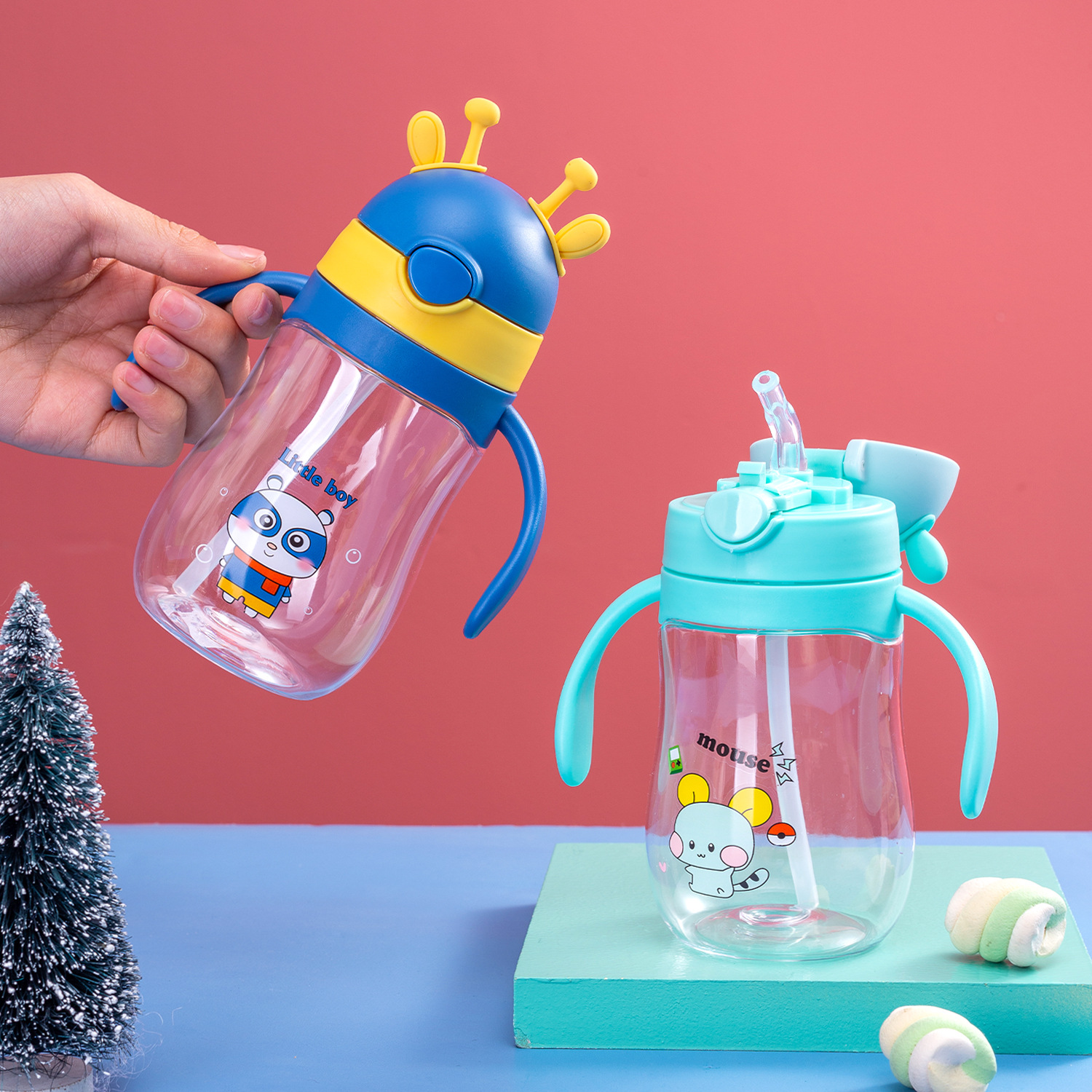 厂家直发儿童吸管杯鹿角水杯幼儿园水杯男陔女孩饮水杯380毫升