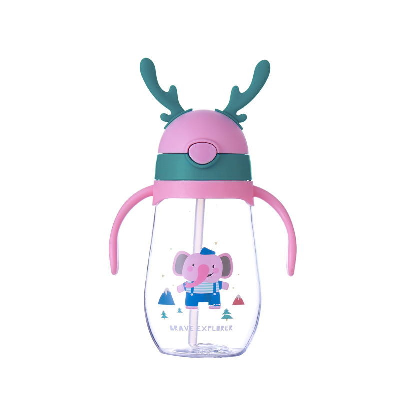 儿童鹿角水杯吸管杯子小学生塑料便携男女宝宝手柄可爱水壶幼儿园