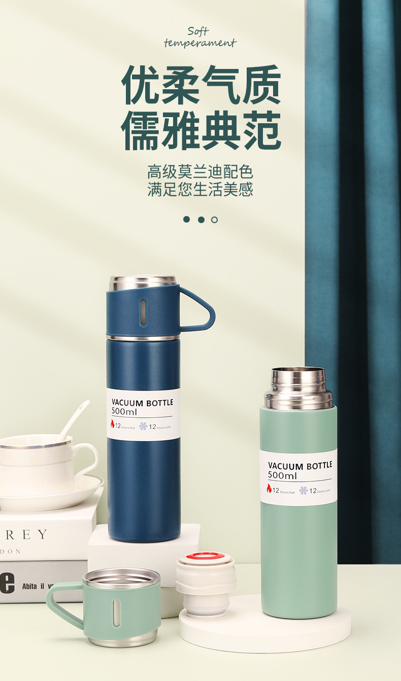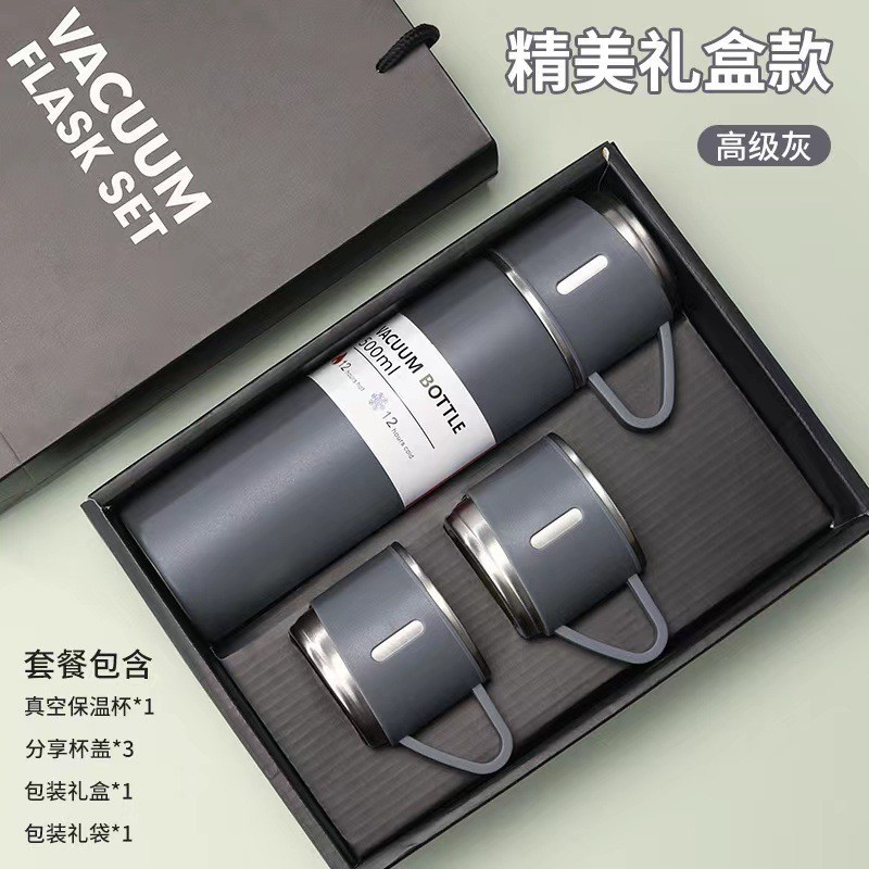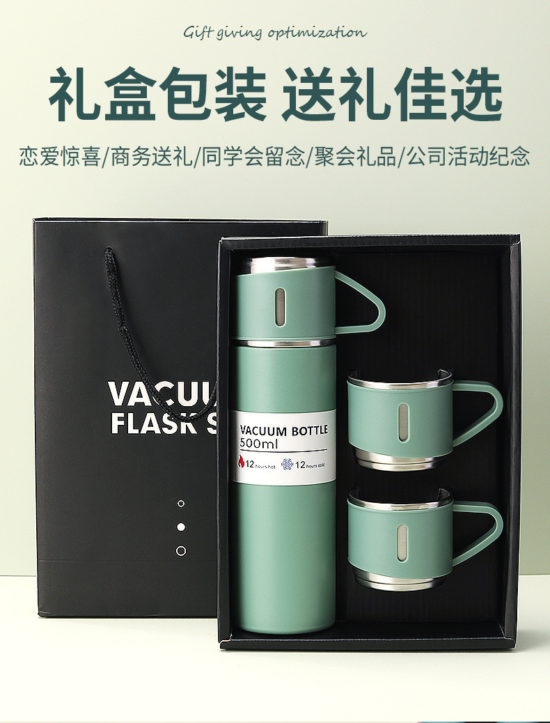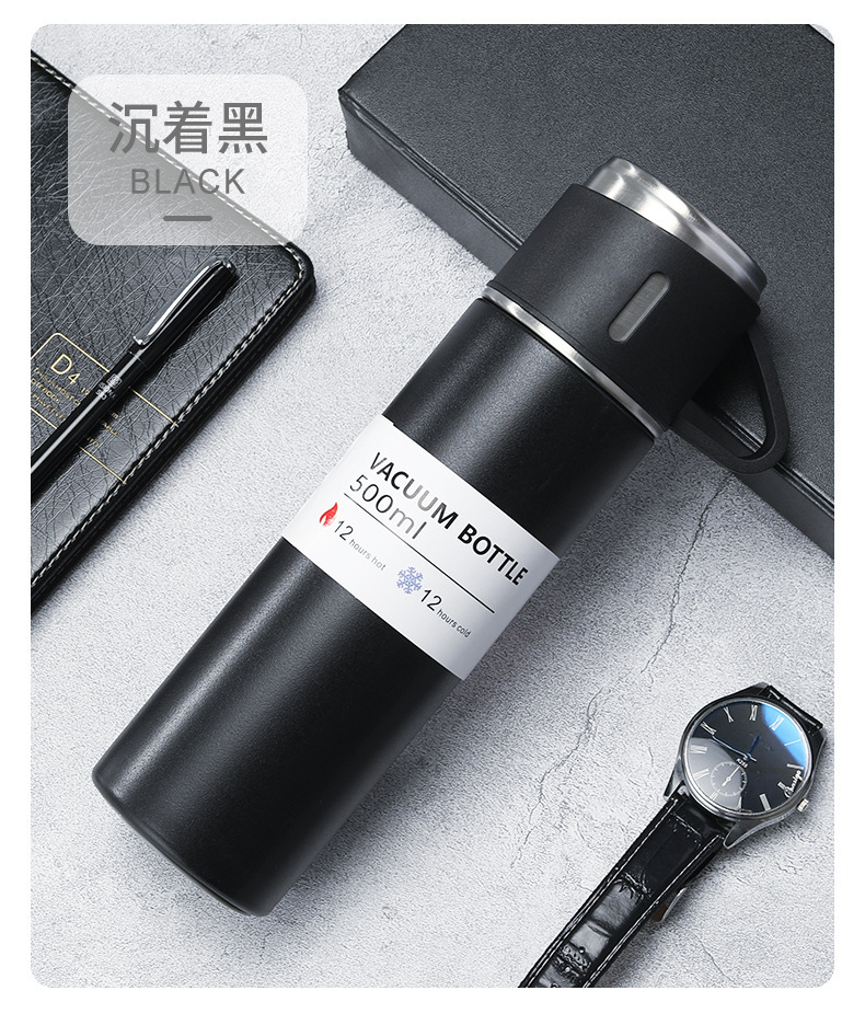 双盖304不锈钢全钢子弹头保温杯便携 手提高档套装礼盒商