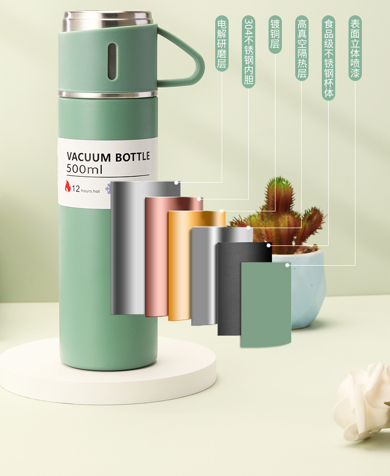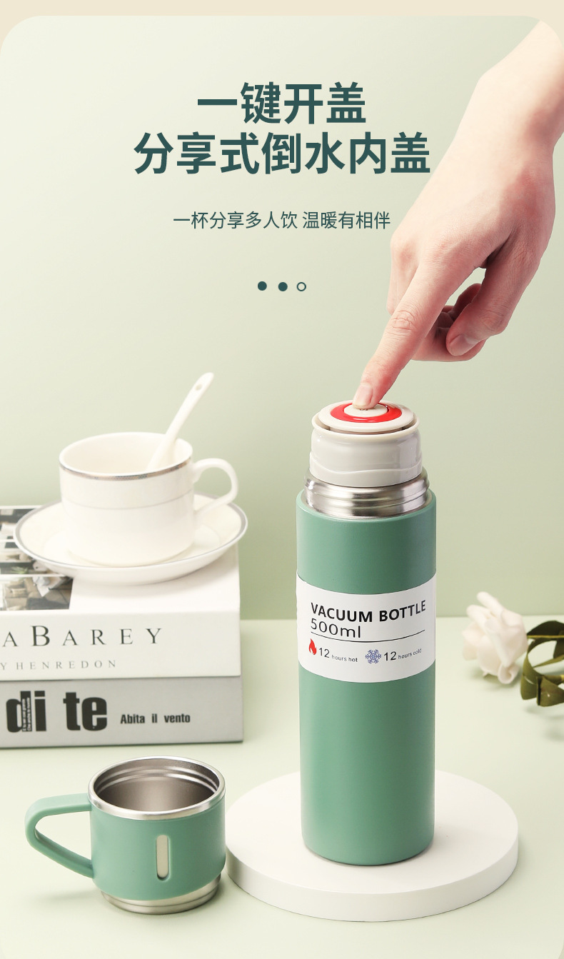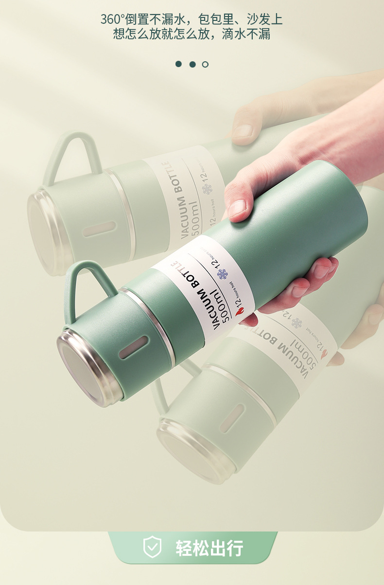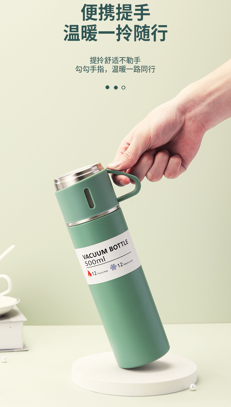 双盖304不锈钢全钢子弹头保温杯便携 手提高档套装礼盒商