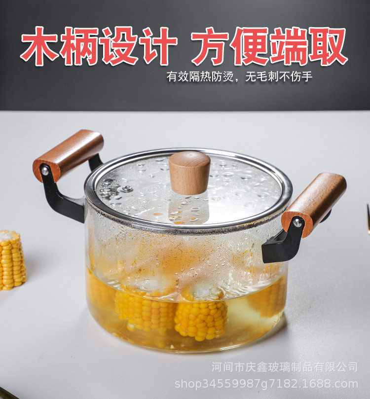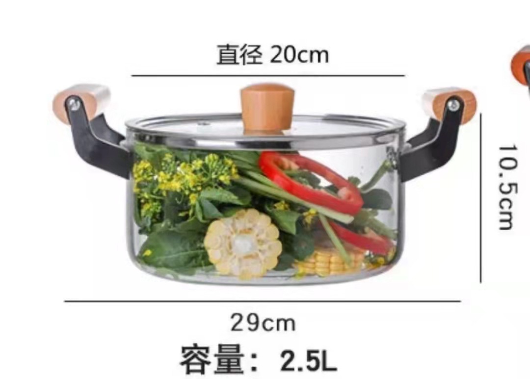 家用玻璃锅 耐热汤锅 可明火涮锅 双木把防热玻璃碗
