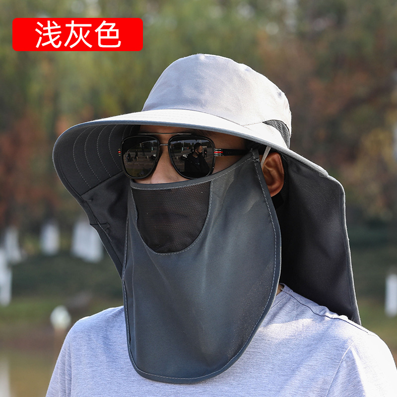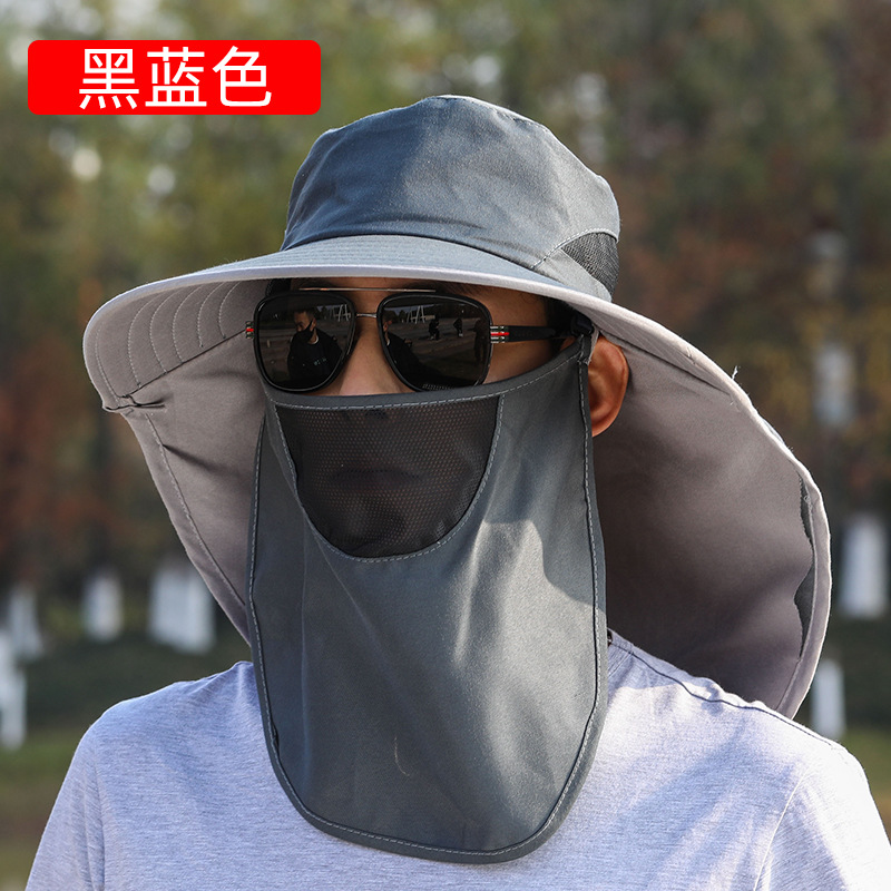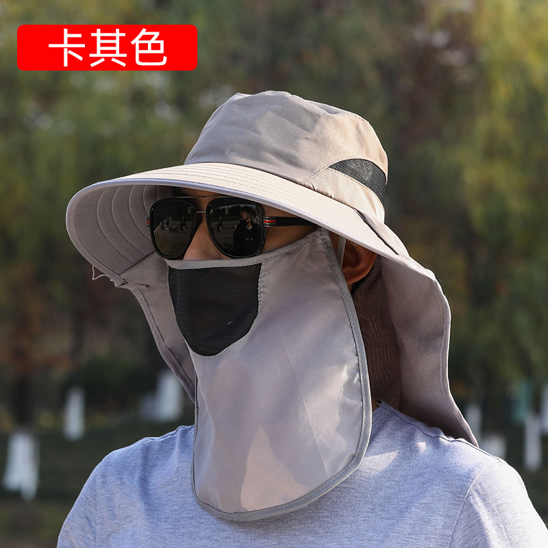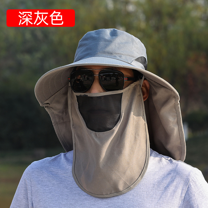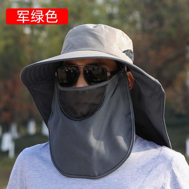 可拆卸口罩渔夫帽子 男户外钓鱼透气遮阳帽采茶帽骑车折叠鬼子帽