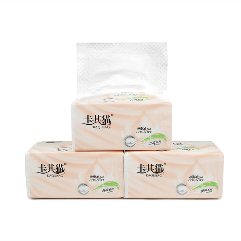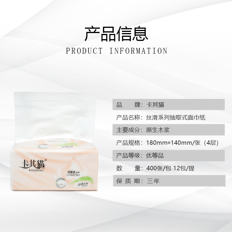 卡其猫纸巾抽纸家用面巾纸婴儿可用大包装大号可湿水400张共12包