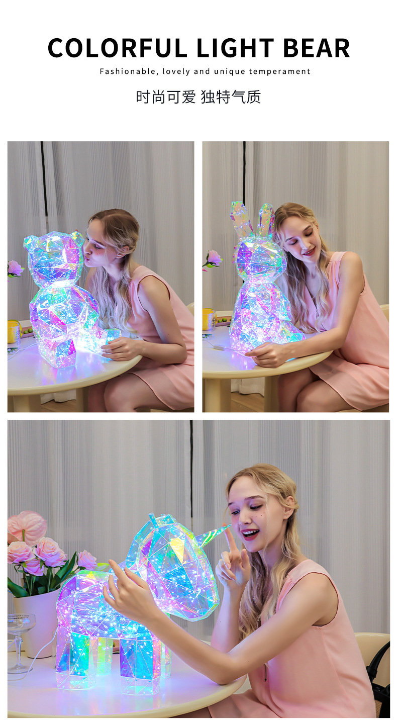 幻彩灯圣诞节节日礼品创意发光小熊公仔手工夜灯生日礼物布置摆件