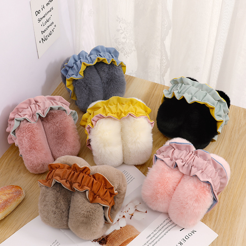 冬天保暖防寒折叠耳罩可爱花朵毛绒耳套学生卡通耳暖耳包