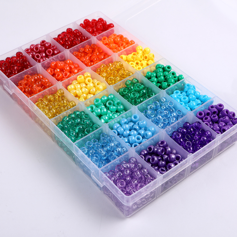 跨境6x9mm塑料彩虹大孔桶珠24格盒装 DIY 珠宝手链项链制作配件