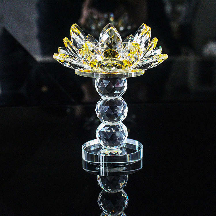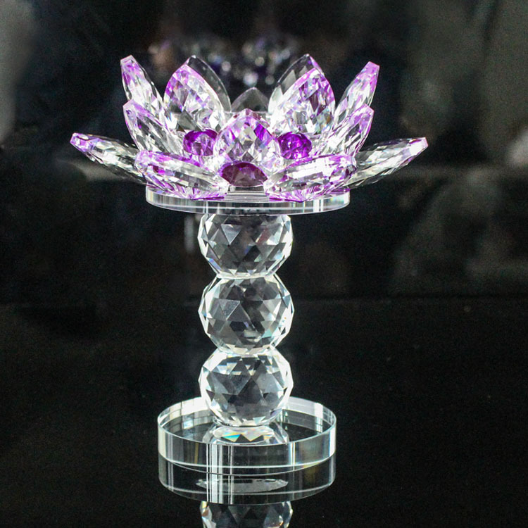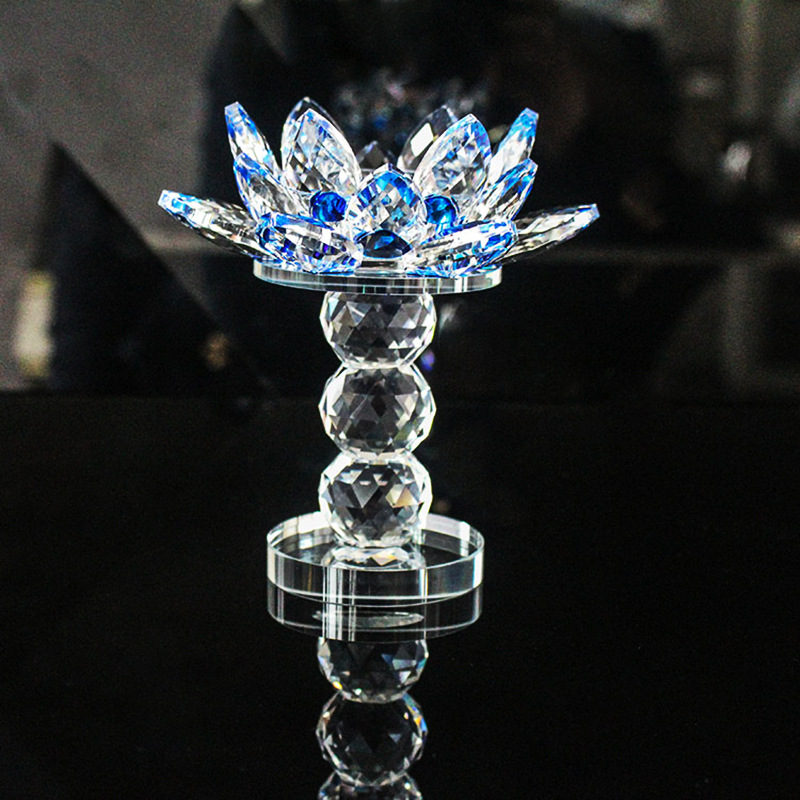 厂家现货供应水晶烛台 创意摆件 高脚水晶莲花开业礼品摆件批发