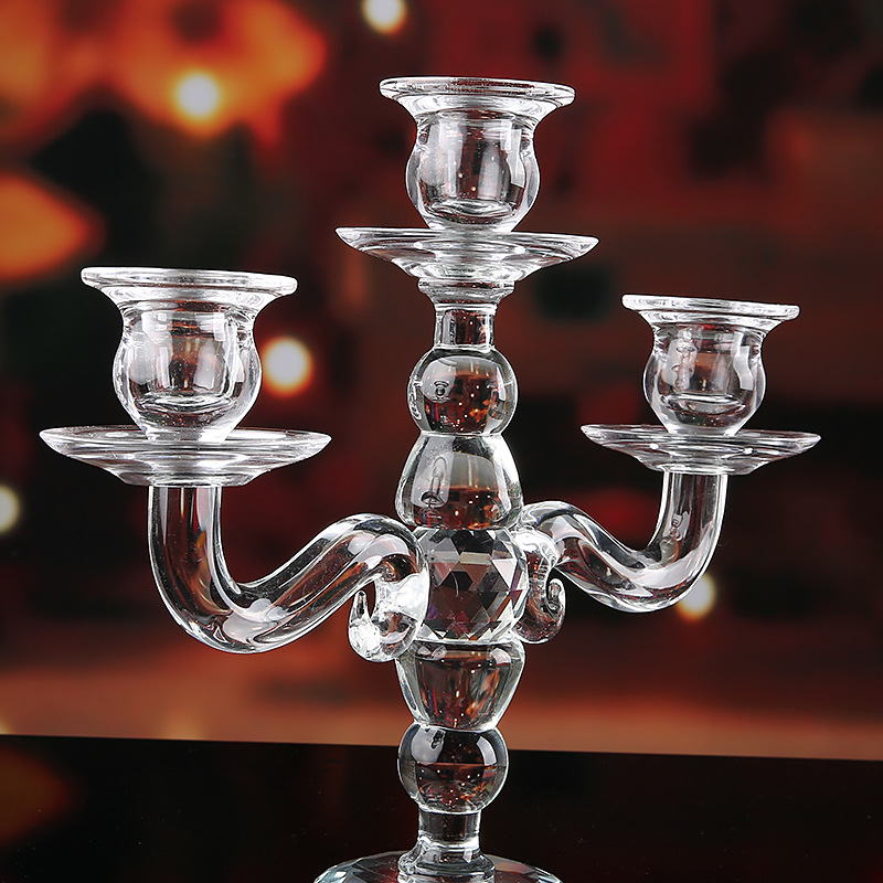 工厂直销西餐厅婚庆烛台摆件 浪漫轻奢水晶烛台 一三五头水晶烛台