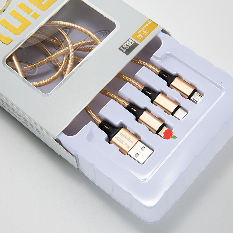 品牌5A手机数据线品牌1拖3适用安卓苹果华为三合一手机充电线