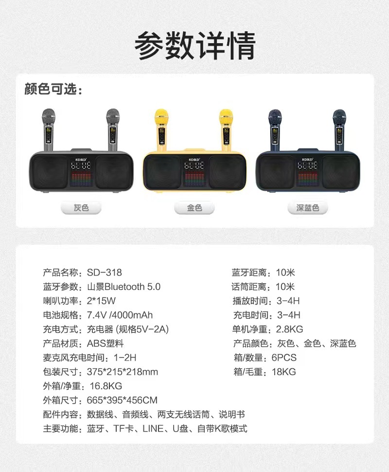 新款SD318一体机连接电视手机唱歌KTV无线麦克风蓝牙音响双人合唱