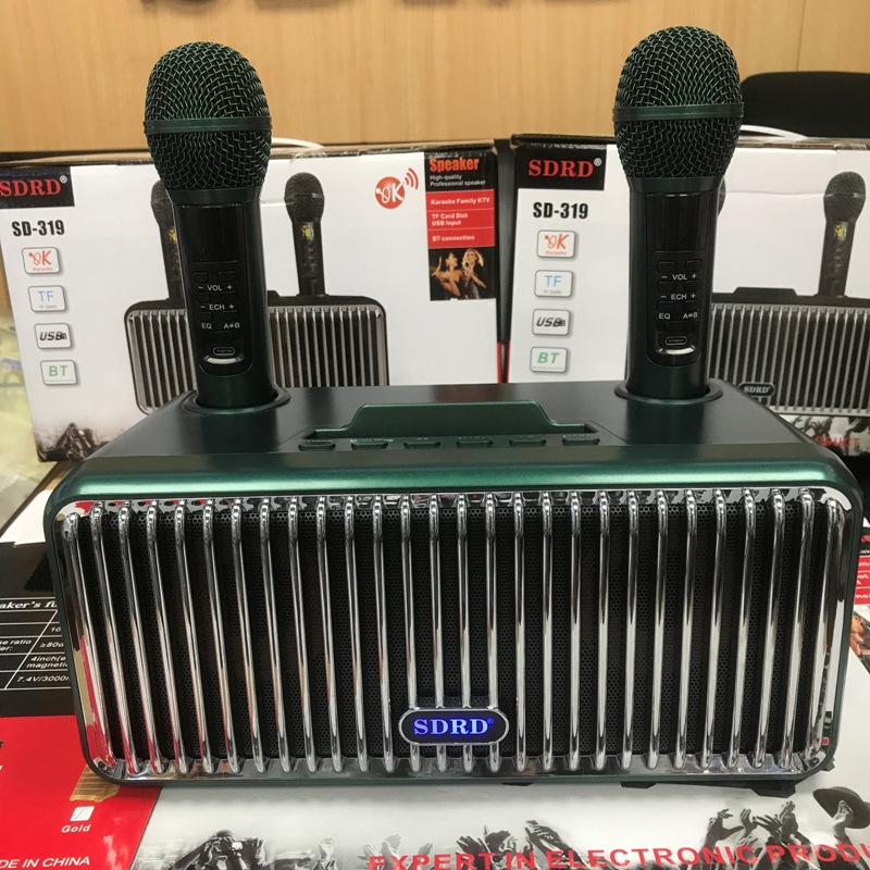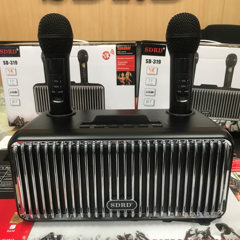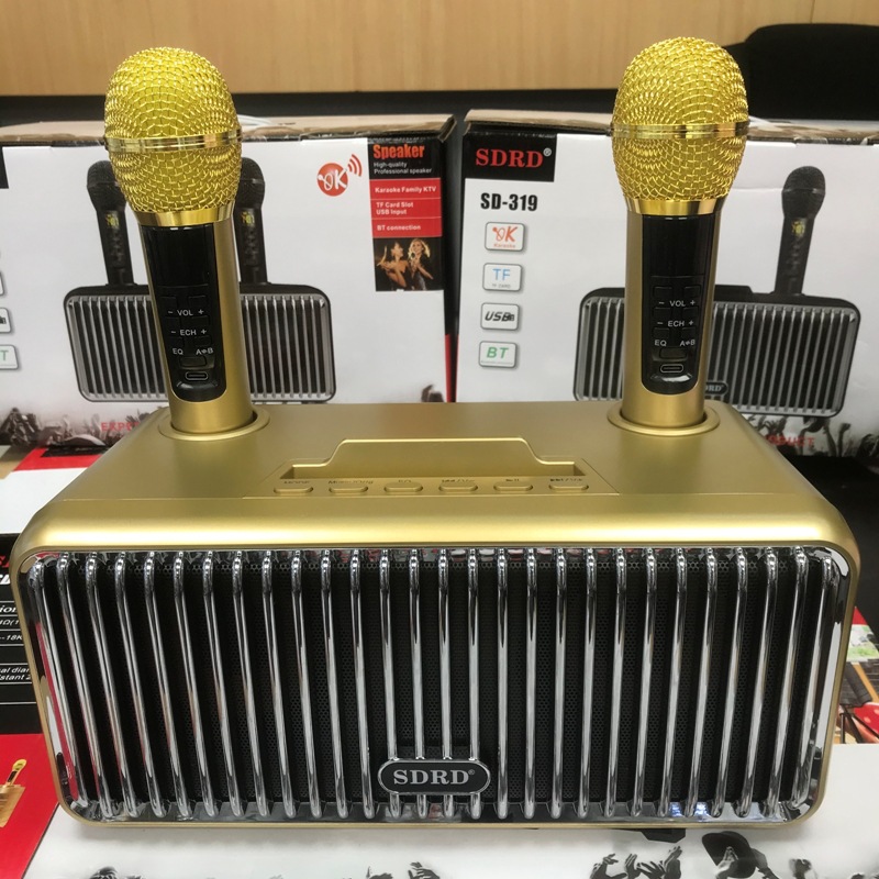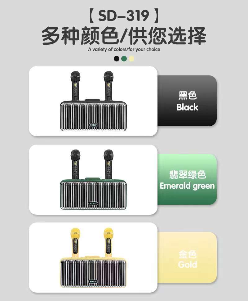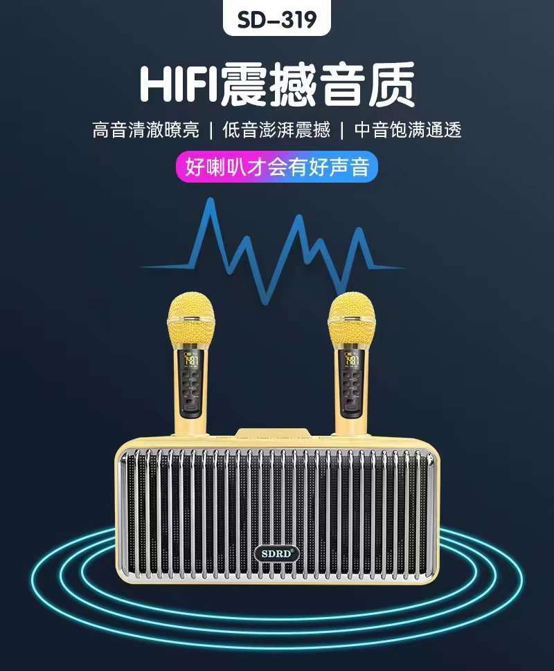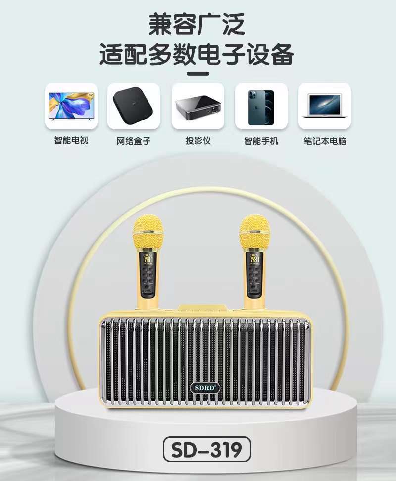 新款SD319蓝牙音箱无线手机家用便携式桌面k歌音响双麦克风一体机