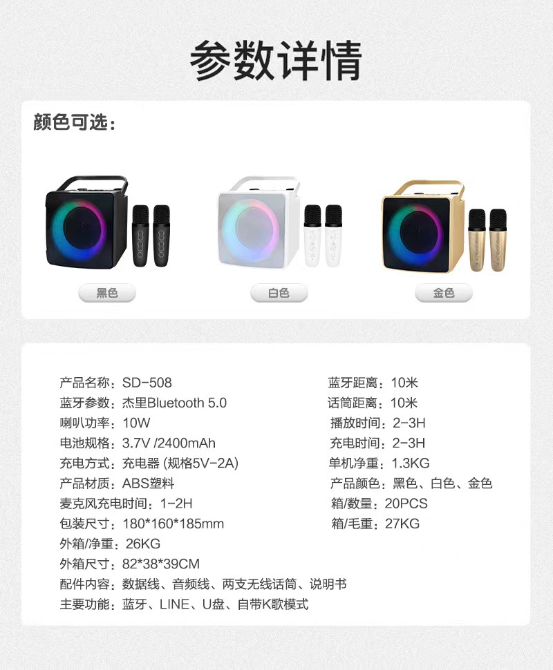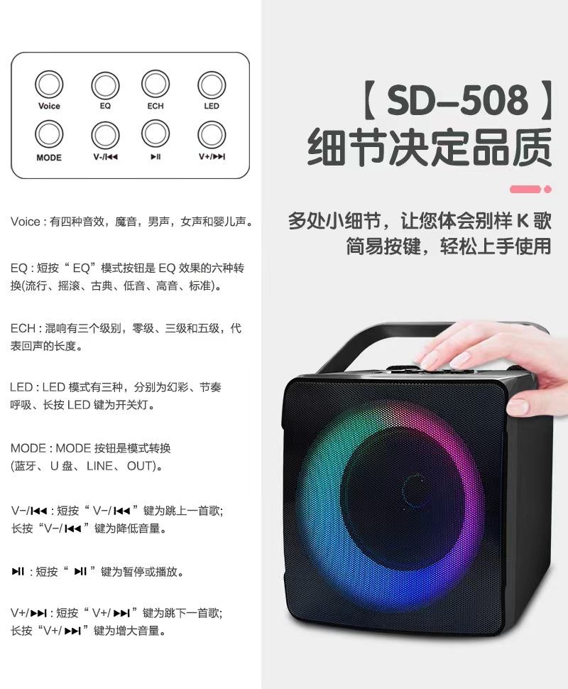SD508家庭K歌机蓝牙音响双无线话筒直播电视音响插卡U盘音响