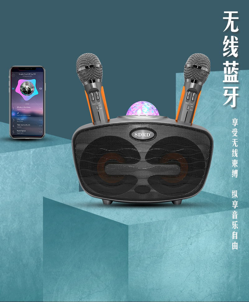 家庭式K歌唛带彩灯户外插卡音箱工厂SD315无线麦克风蓝牙音箱