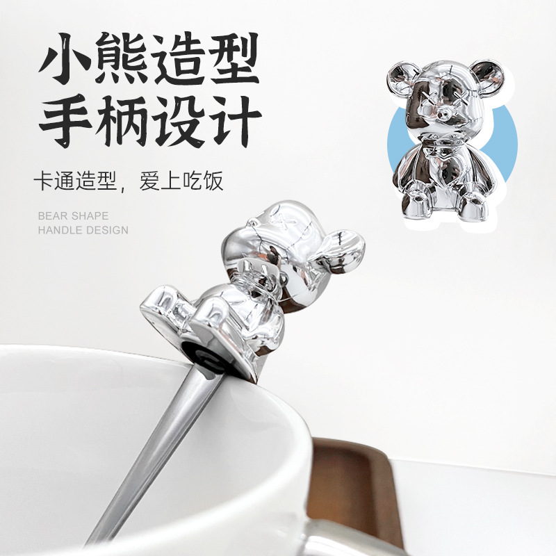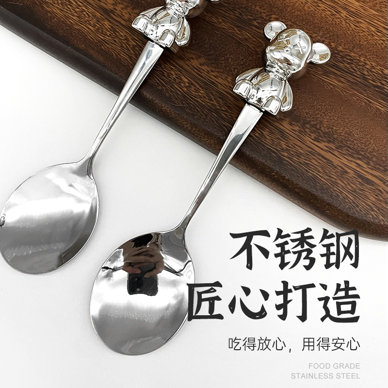 新款创意不锈钢勺子小熊卡通不锈钢叉子高颜值家用不锈钢勺叉可爱