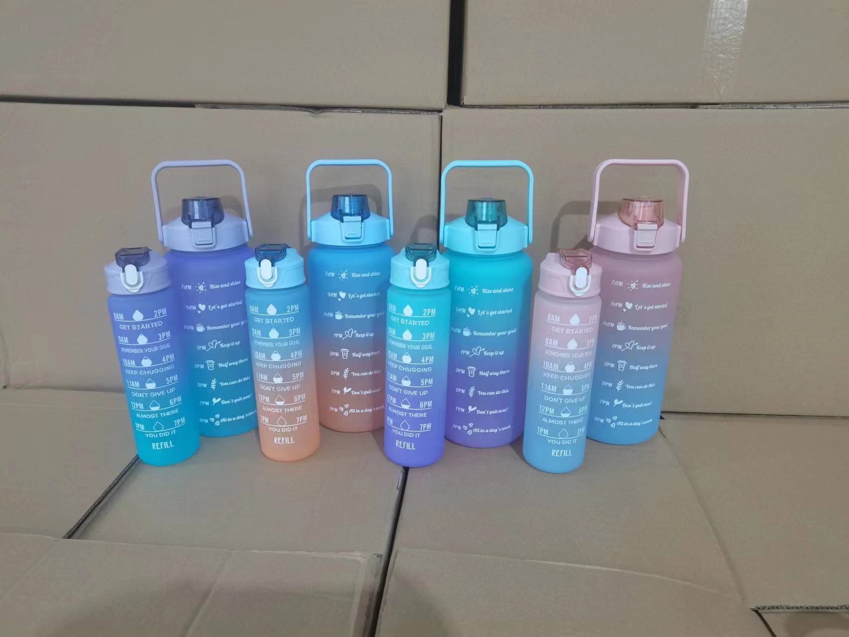 杯子批发大容量户外运动水杯套装创意磨砂塑料杯大水壶