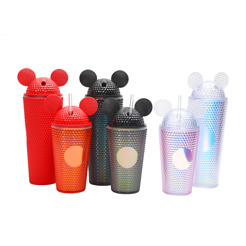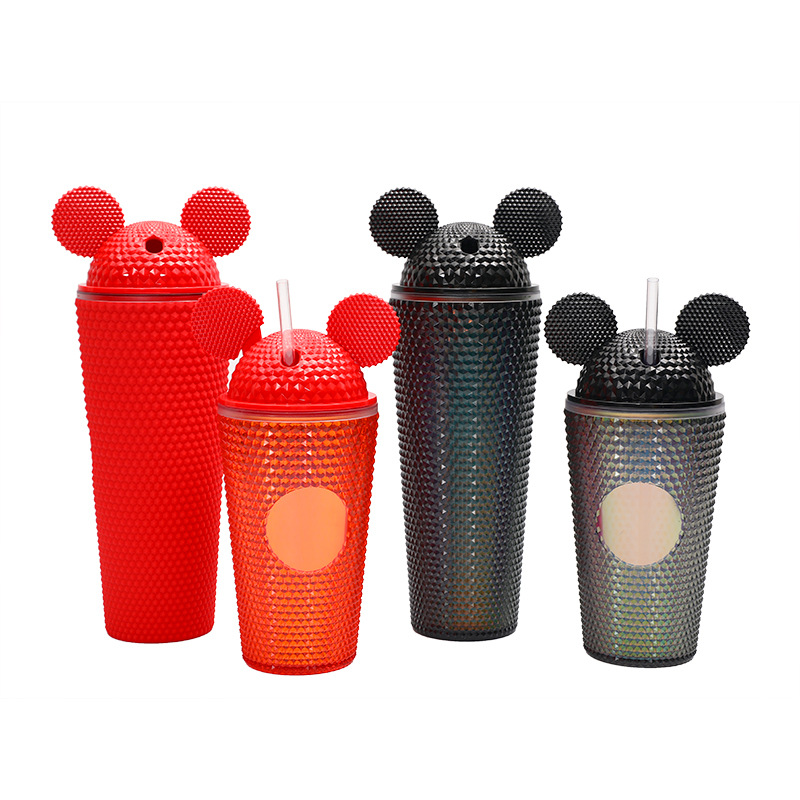 亚马逊夏日双层塑料吸管杯大容量创意米老鼠扎手杯便携钻石榴莲杯