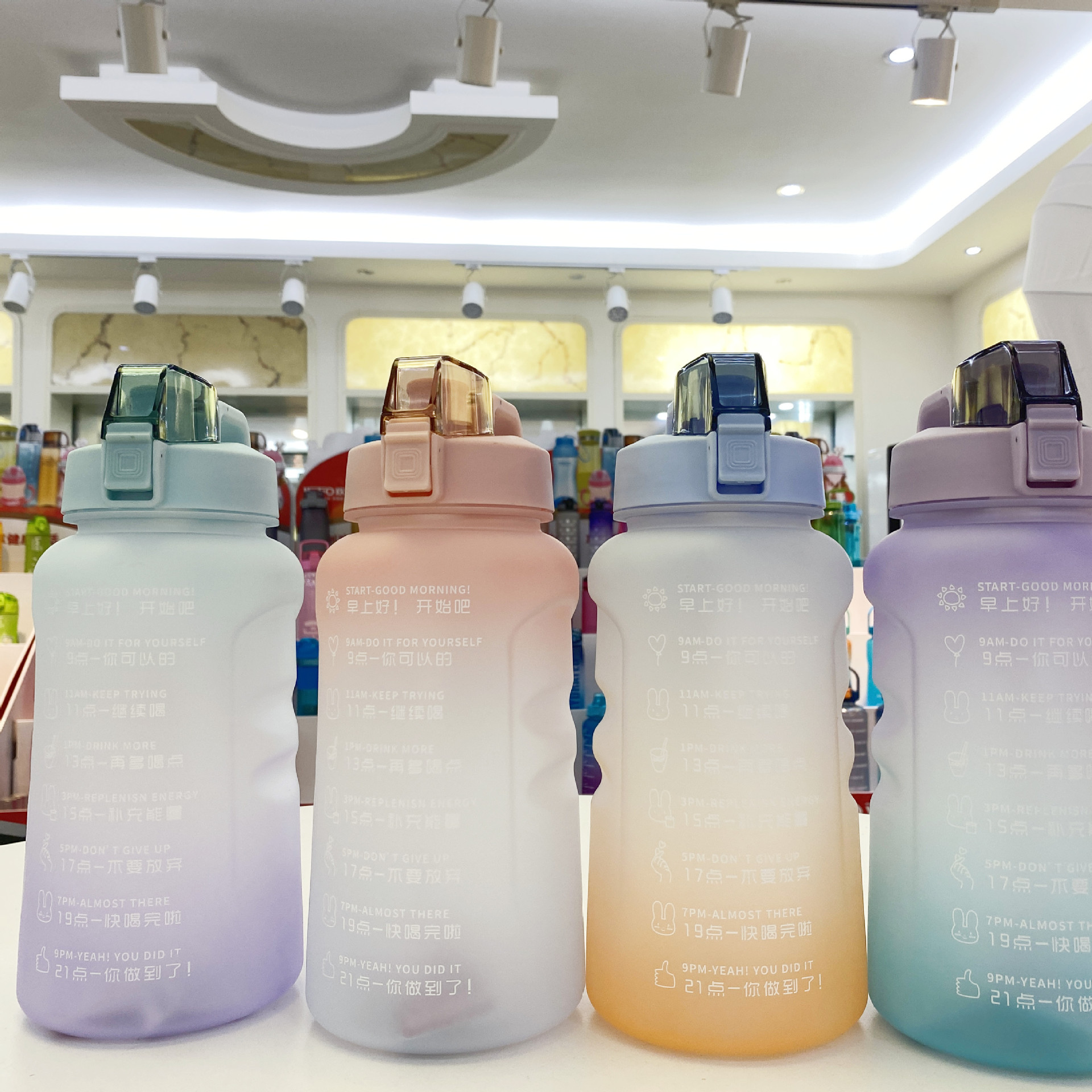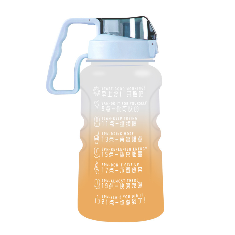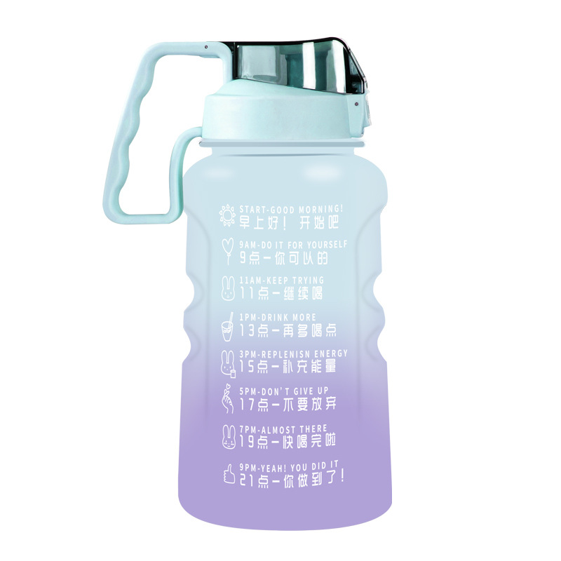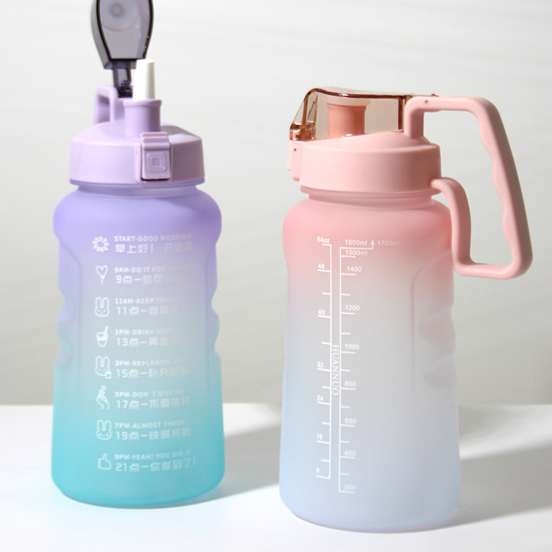 1500ml亚马逊热销励志水壶大容量手柄运动水壶带吸管渐变色太空杯