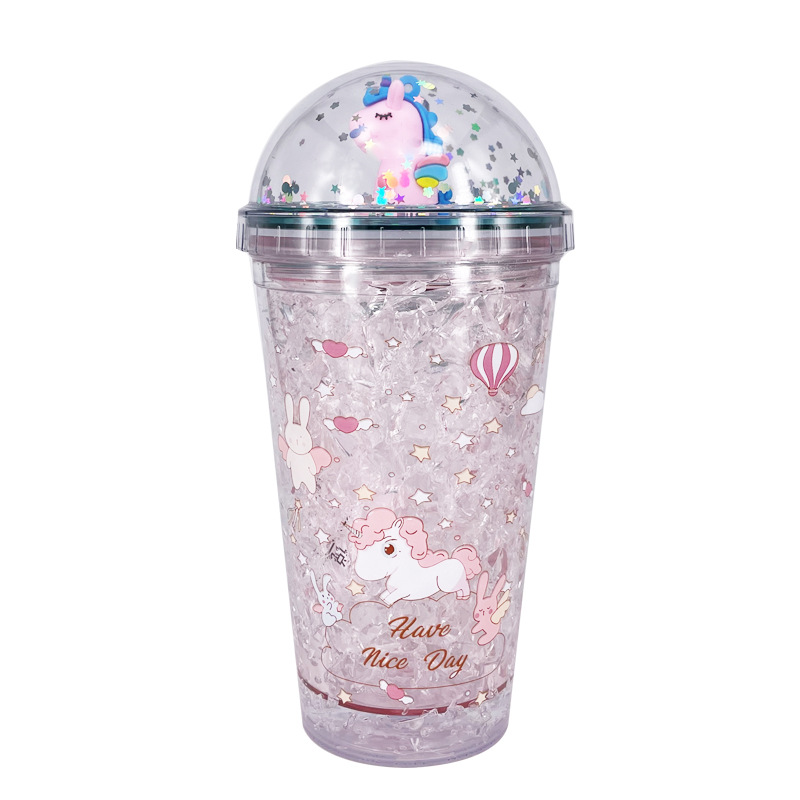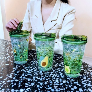 夏日碎冰杯韩国清新双层吸管水杯女学生可爱网红便携个性冰镇杯子