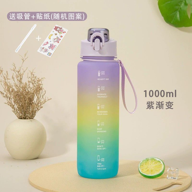 三色渐变杯子外贸现货跨境专供南美骑行水瓶户外磨砂彩虹运动水杯