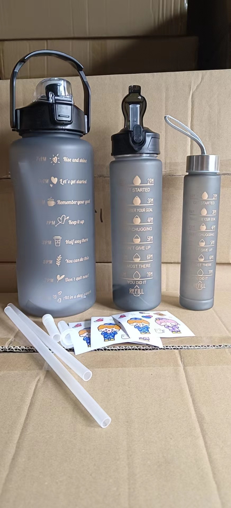 大容量三件套杯渐变色网红塑料水杯男女运动水壶弹跳盖学生彩虹杯