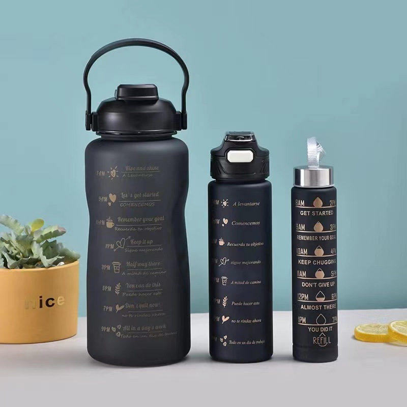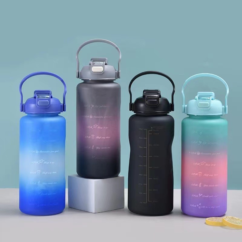 渐变色杯三件套杯塑料杯大容量运动水杯吸管杯磨砂杯双饮水壶跨境