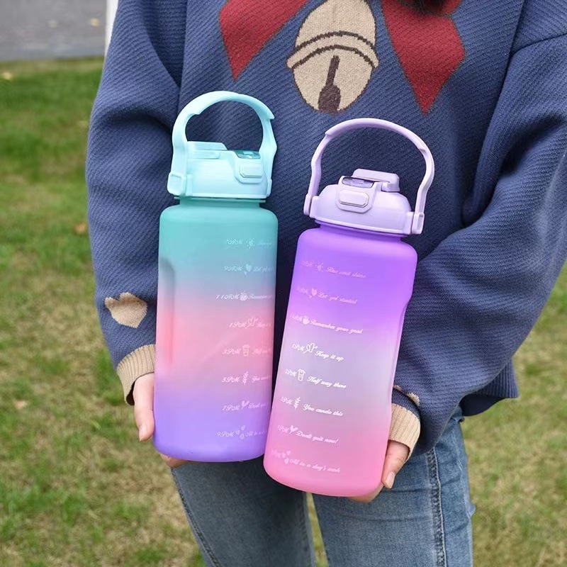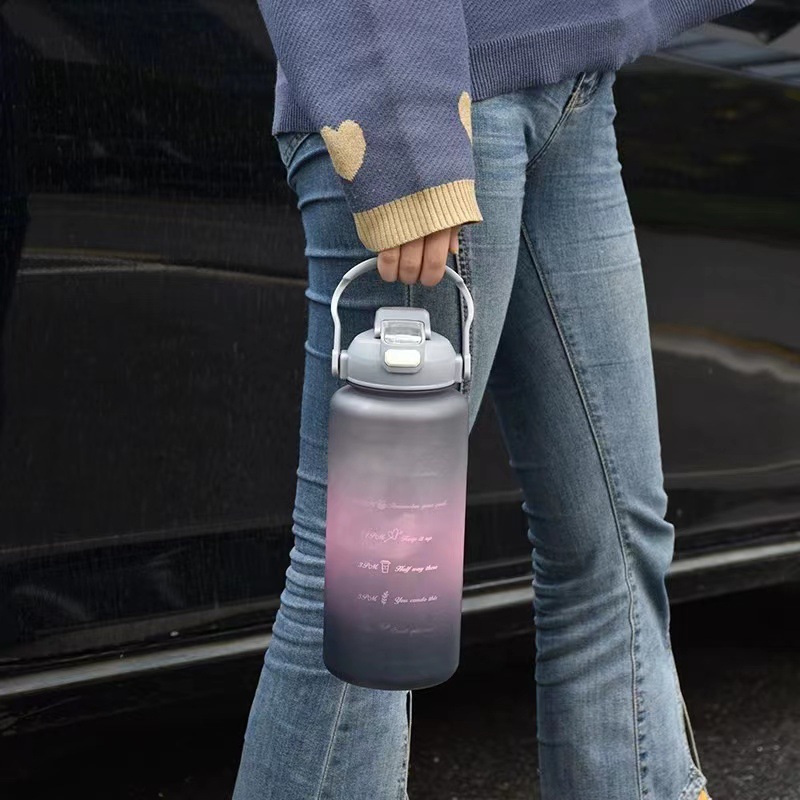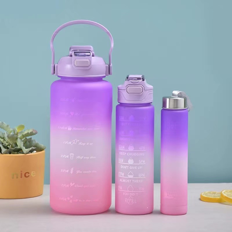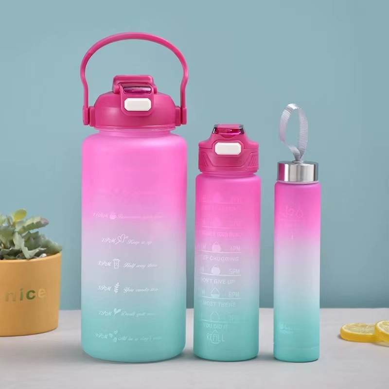 渐变色磨砂塑料杯大容量户外运动水壶跨境新品大肚杯三件套杯定制